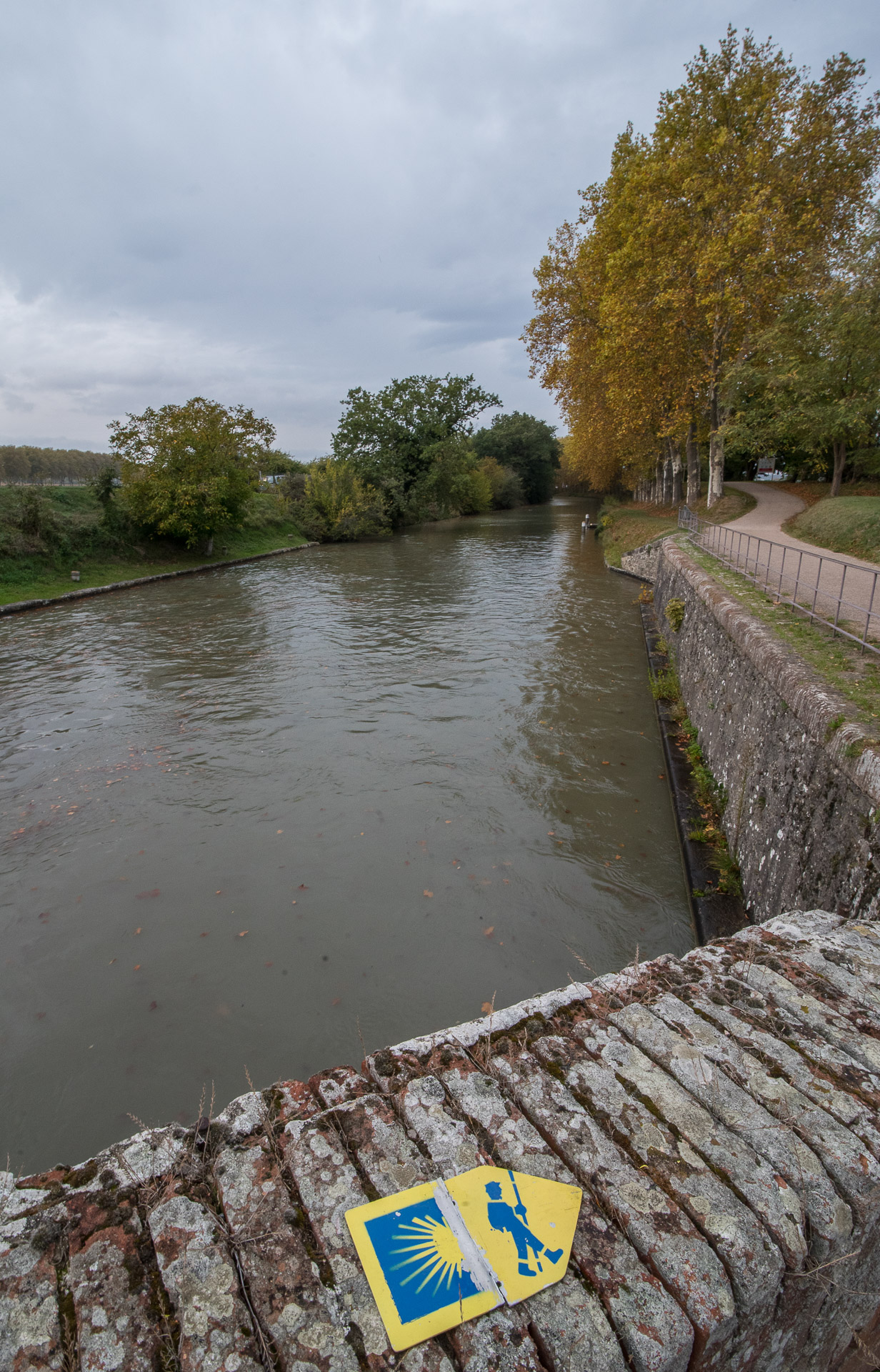 Algunos tramos del Canal coinciden con una de las rutas jacobeas en Francia, como indica esta señal junto a la esclusa de La Negra, en las cercanías de Villenouvelle