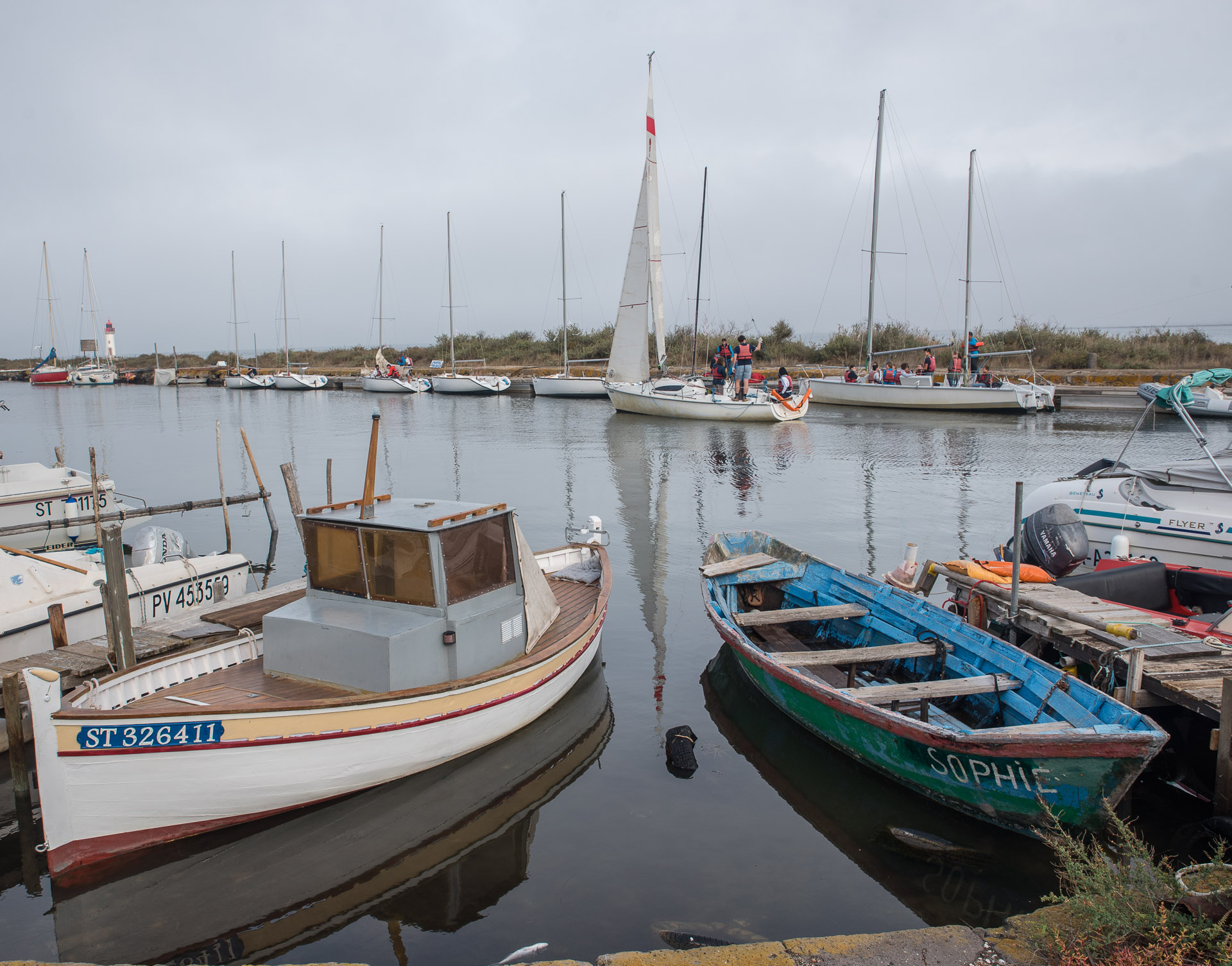 Unas pequeñas barcas junto a la Pointe del Onglous, el pinto en el que el Canal de Midi termina su recorrido.