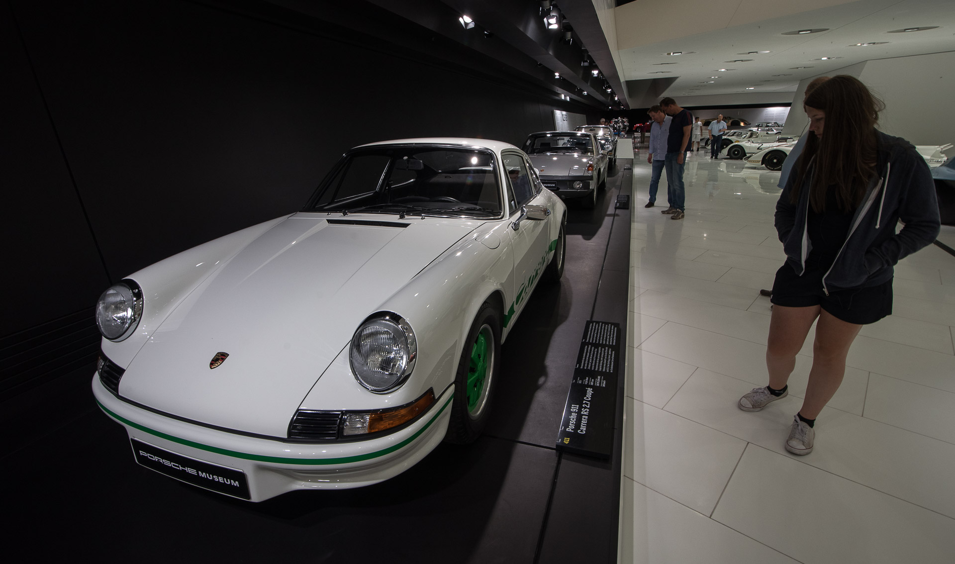 Una joven contempla uno de los 911 más populares: el Carrera RS Coupé.
