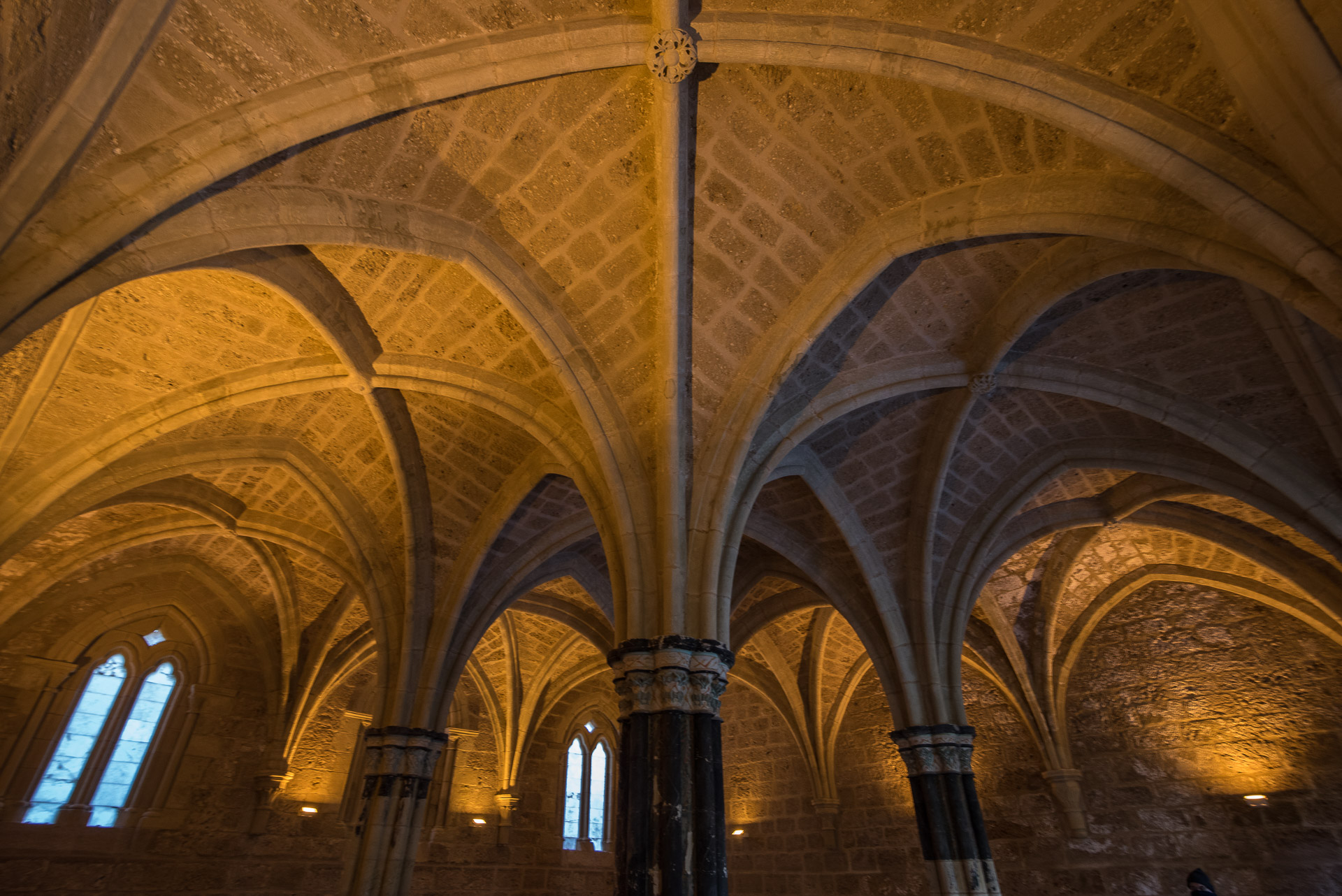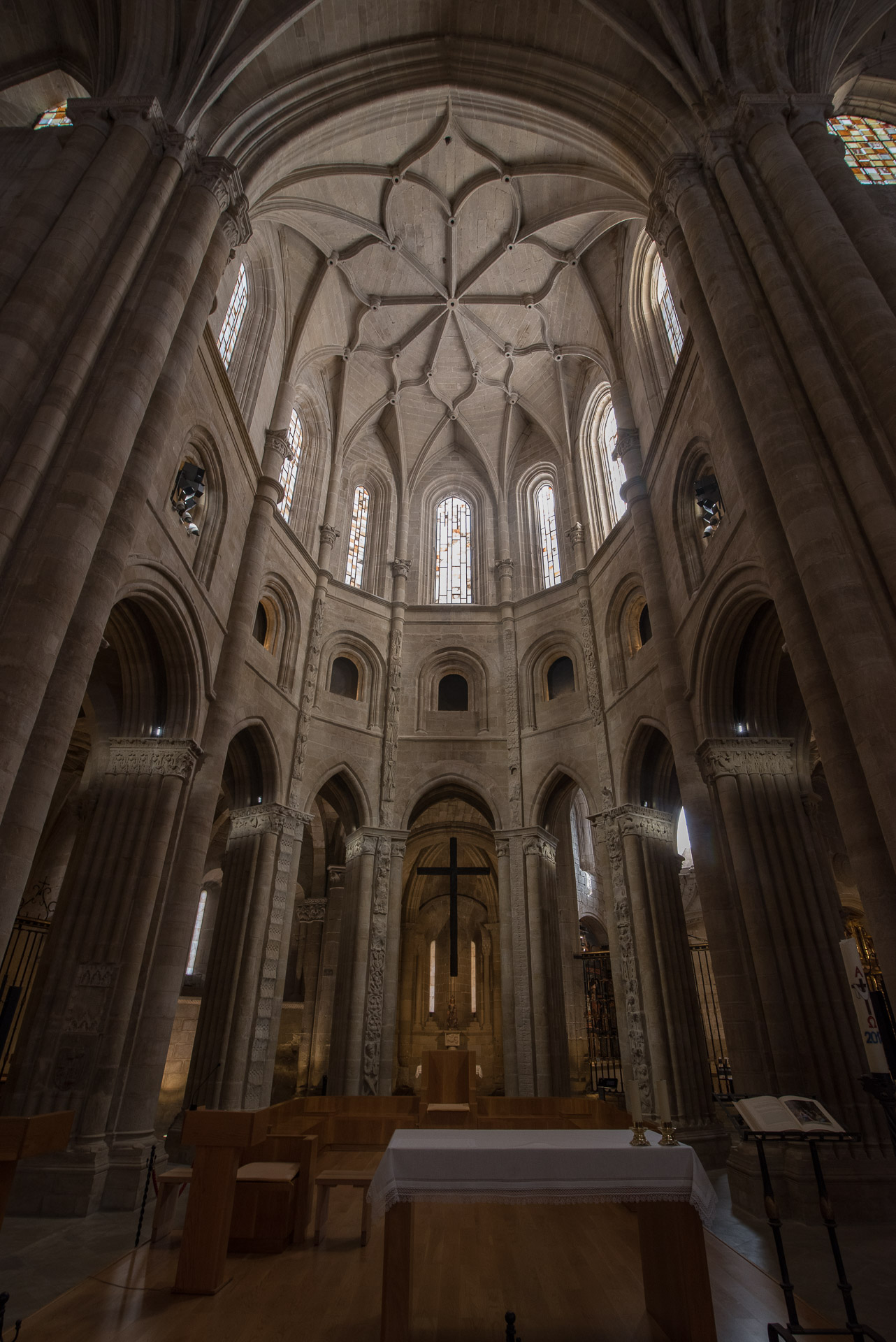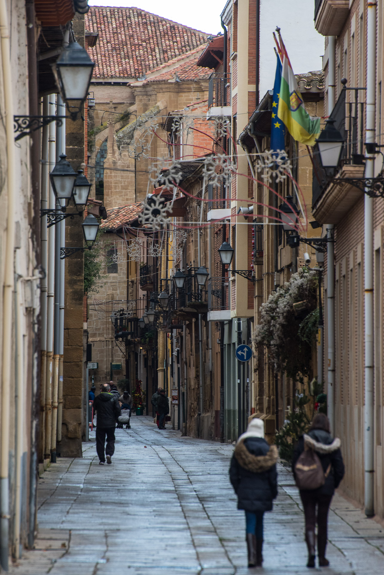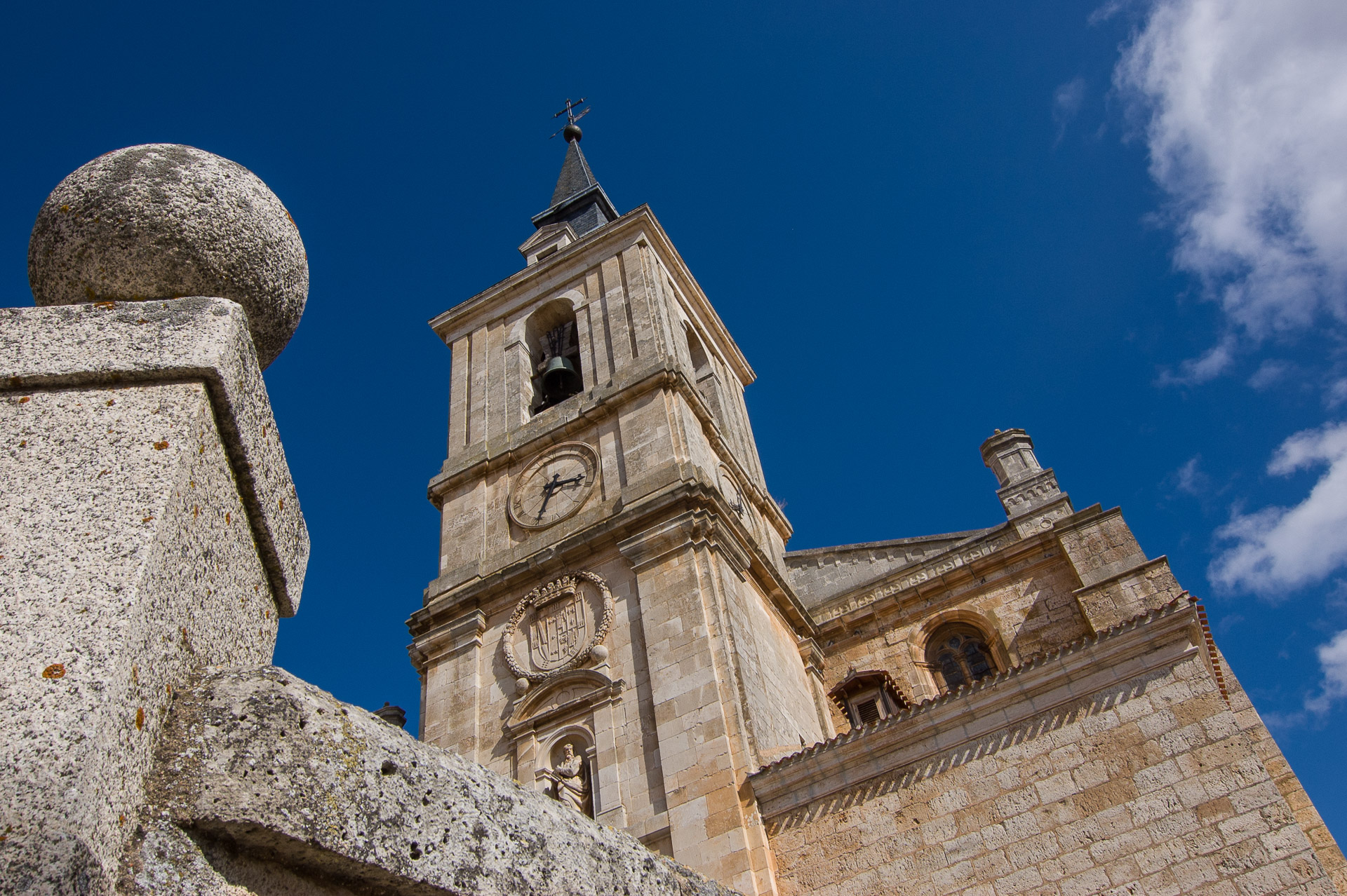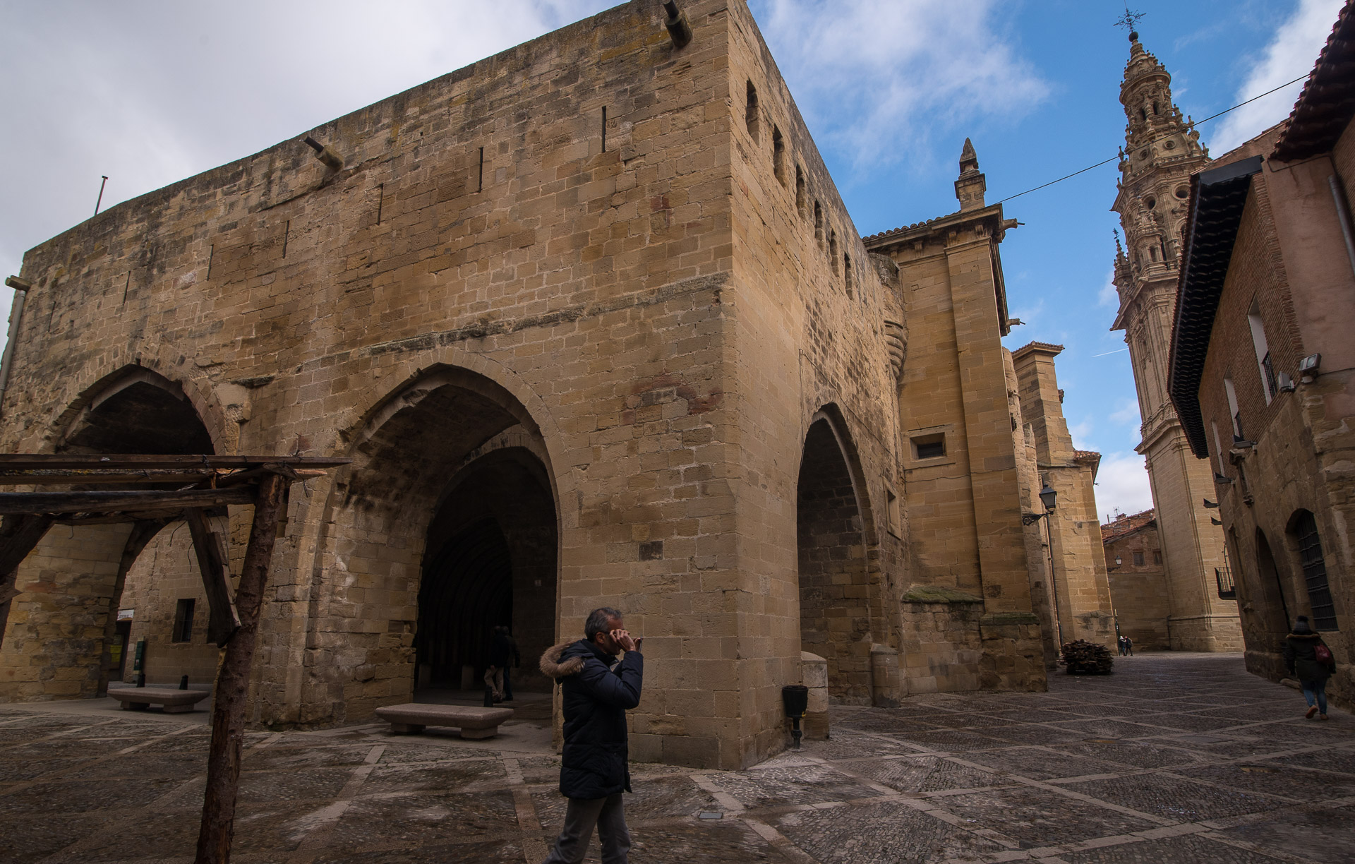La curiosa defensa de la entrada de la Catedral y, al fondo, la torre exenta del campanario