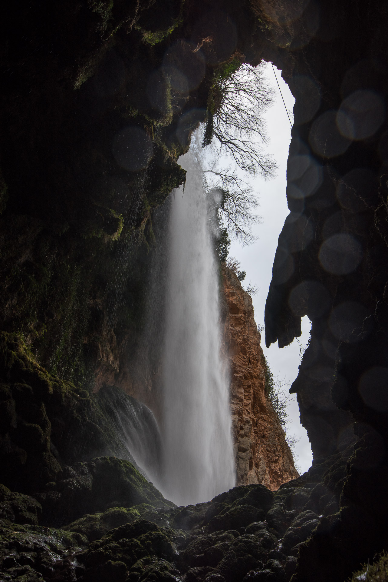 La cascada Cola de Caballo desde el interior de la gruta Iris