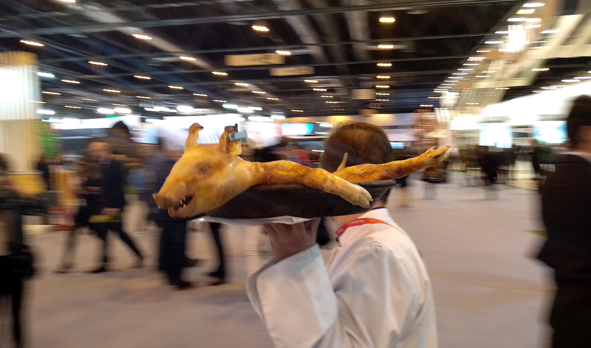 No sólo en Segovia se comen buenos cochinillos, también en Arévalo (Ávila) de donde es este que se pudo ver y oler en la feria.