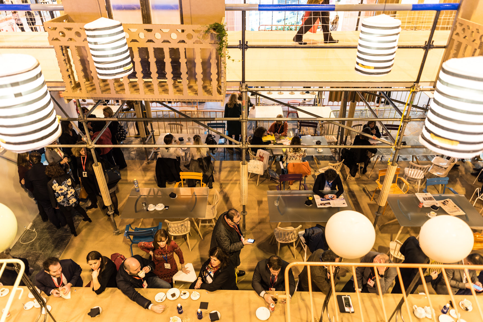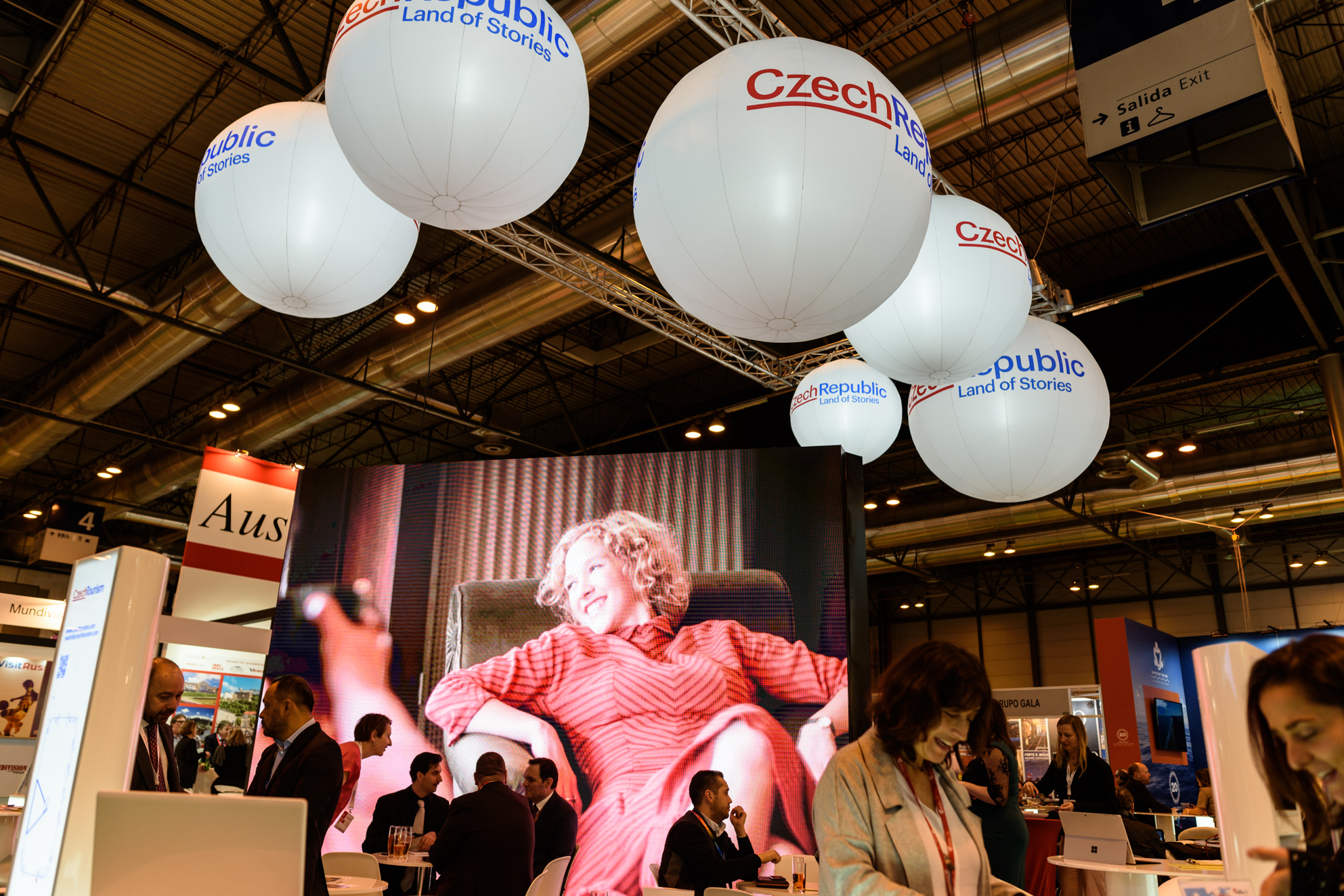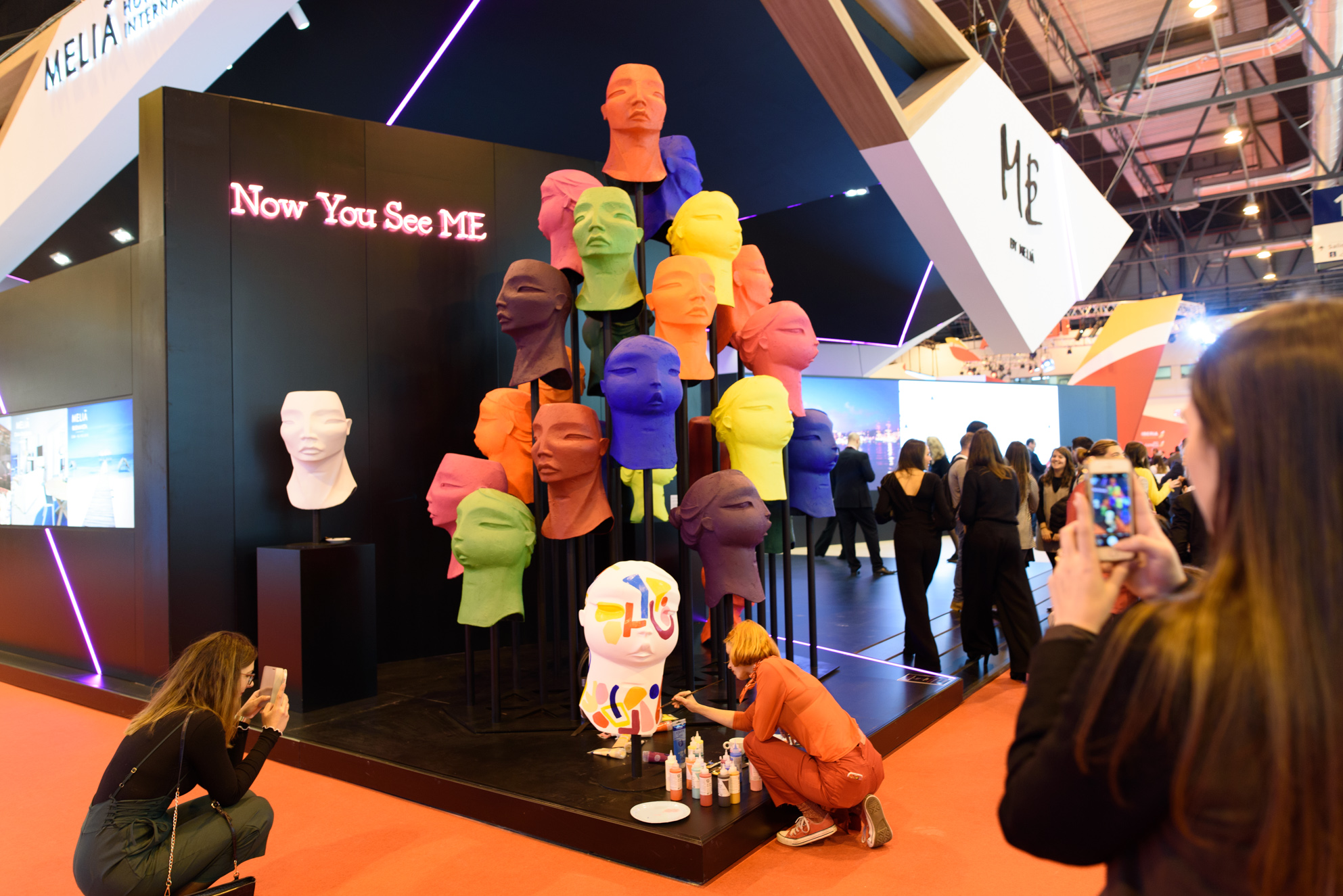 En el stand de la cadena Meliá Hotels International se puede ver una instalación artística muy colorida y de 4 metros de altura de Pink Intruder, los artistas reconocidos por sus esculturas arquitectónicas en el festival Burning Man (EEUU).