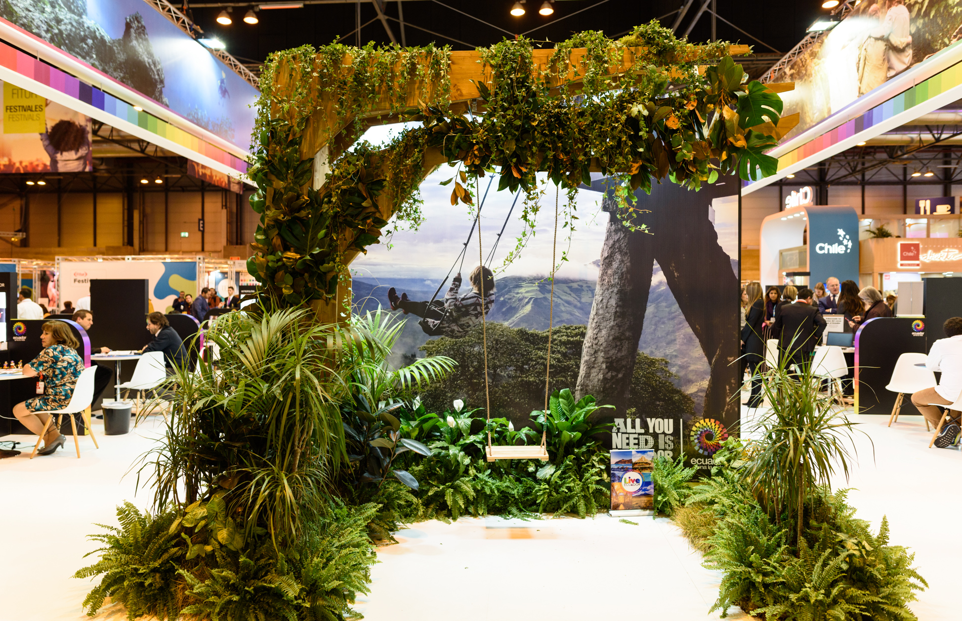 En el stand de Ecuador te podrás columpiar en medio de la selva.