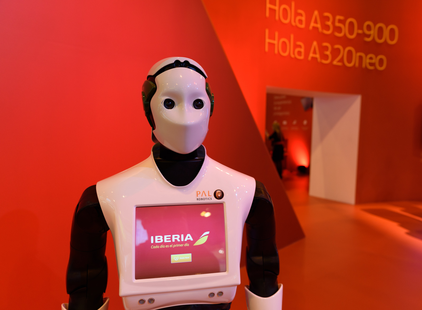 Iberia con un stand de lo más tecnológico donde daba la bienvenida a los visitantes O'Clock, bautizado así por la puntualidad de la aerolínea.