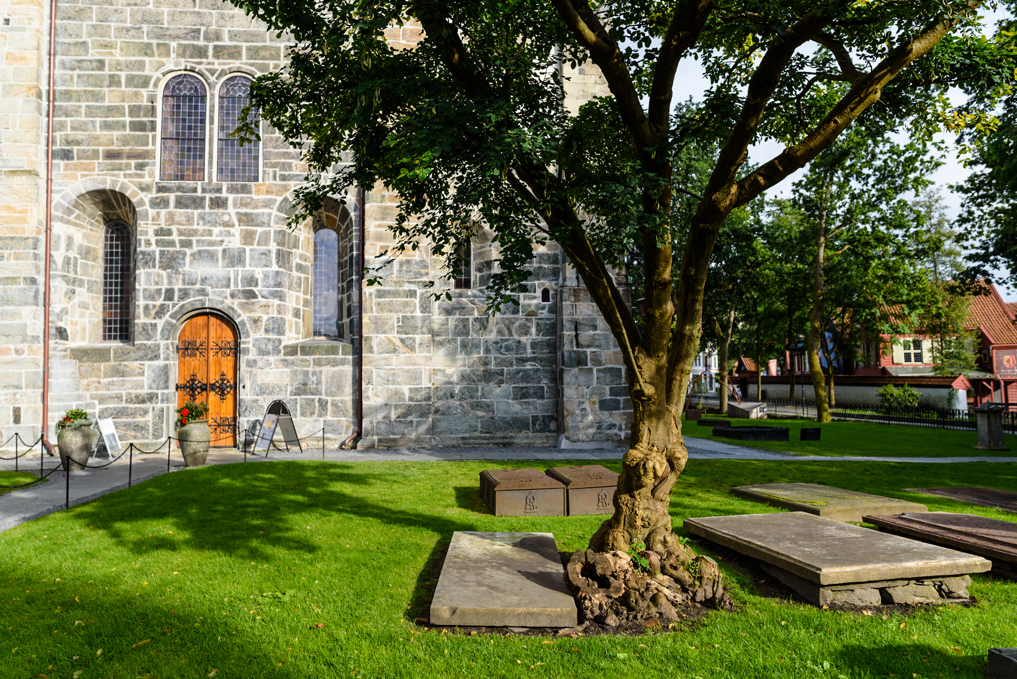 La iglesia de Santa María es una de las más extraordinarias y bellas de la ciudad. En Noruega es muy común que el cementerio se encuentre rodeando los templos incluso dentro del propio casco antiguo.