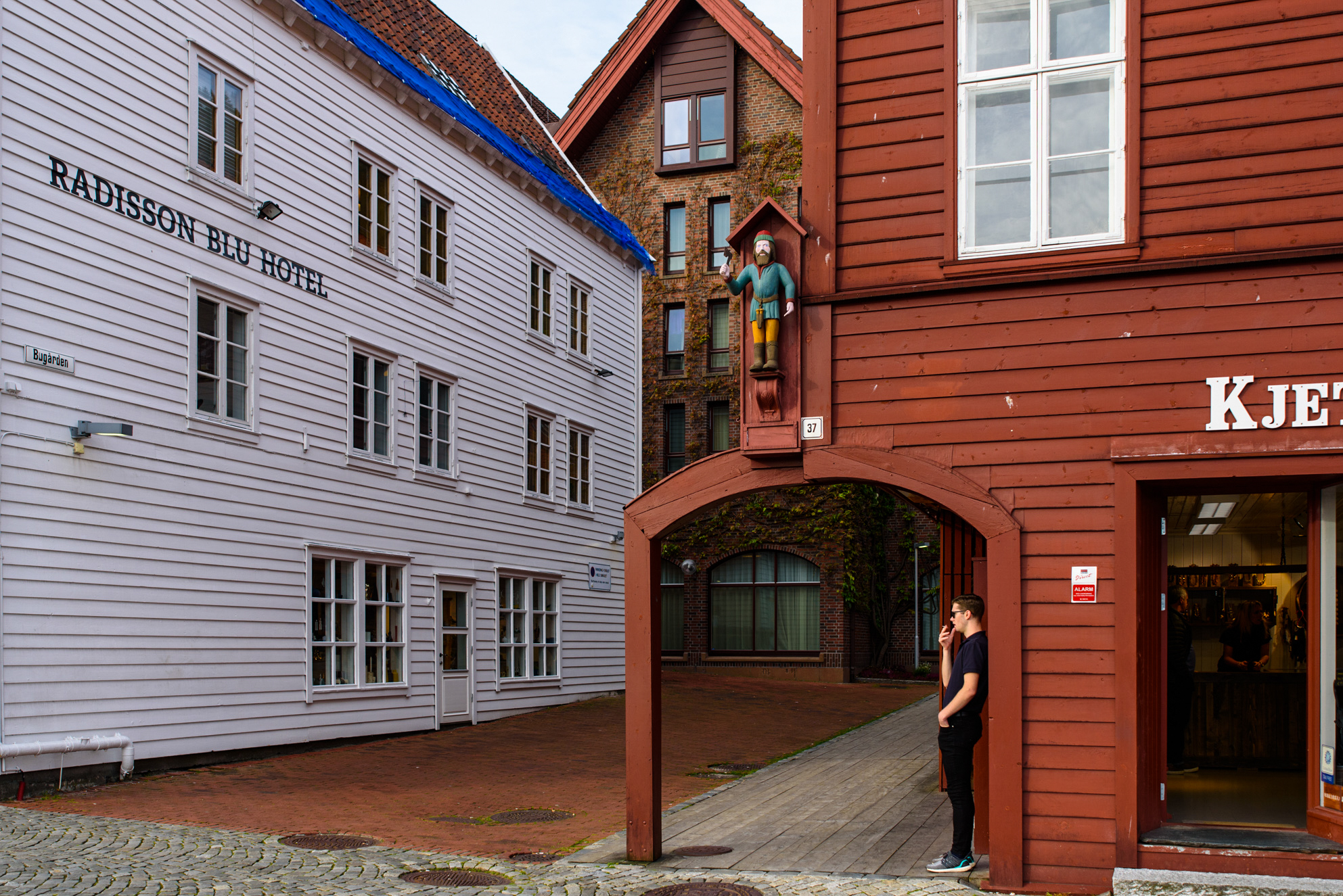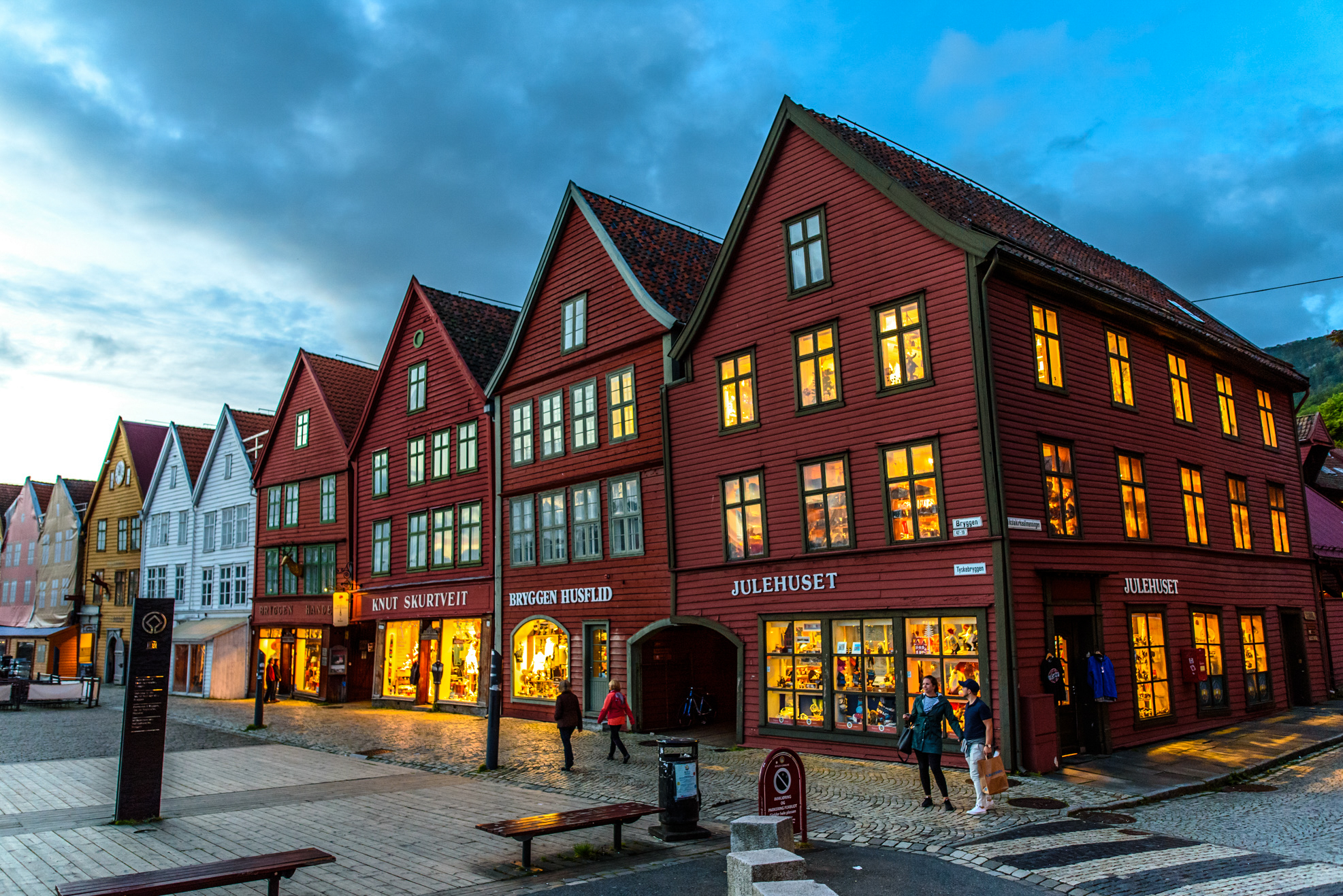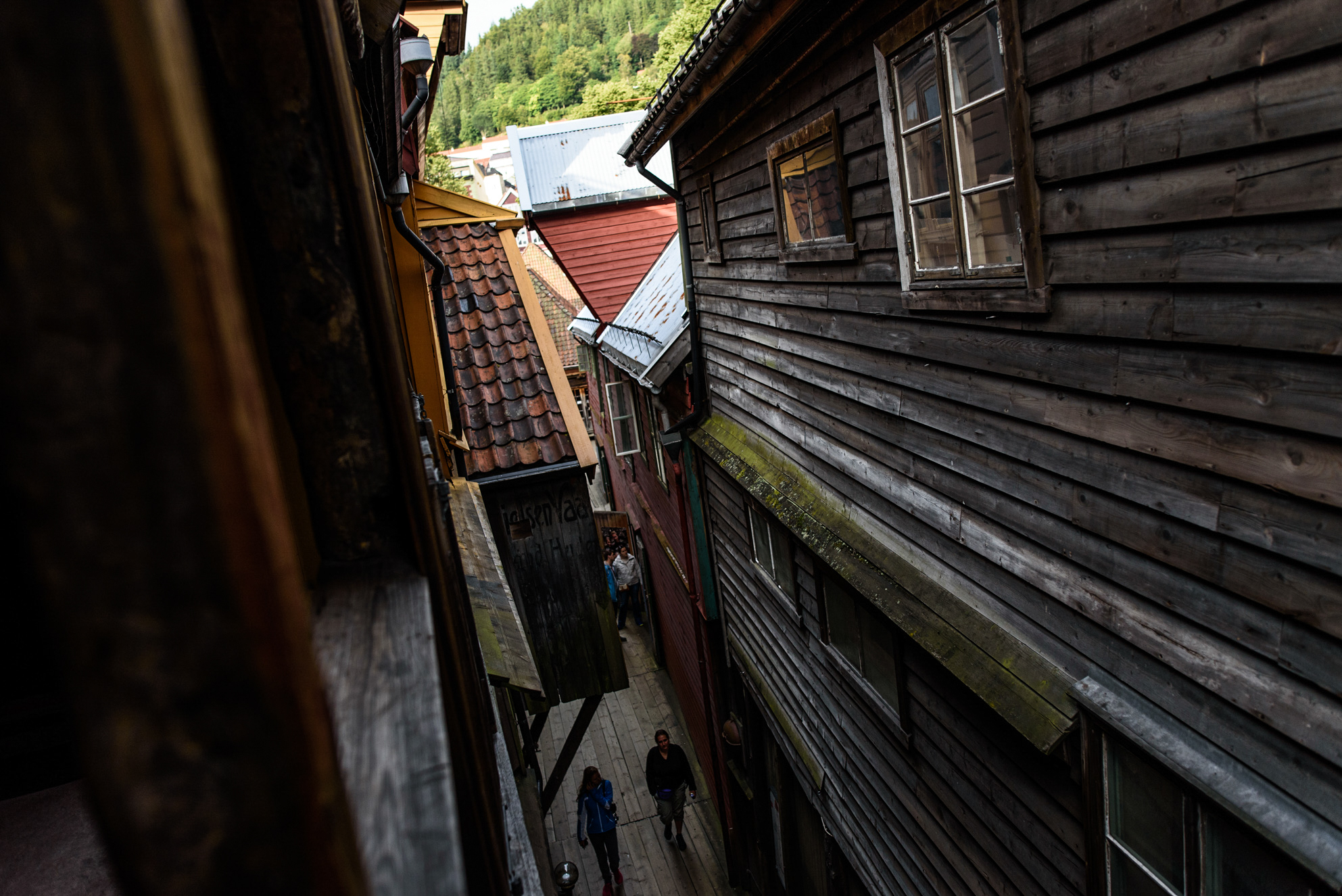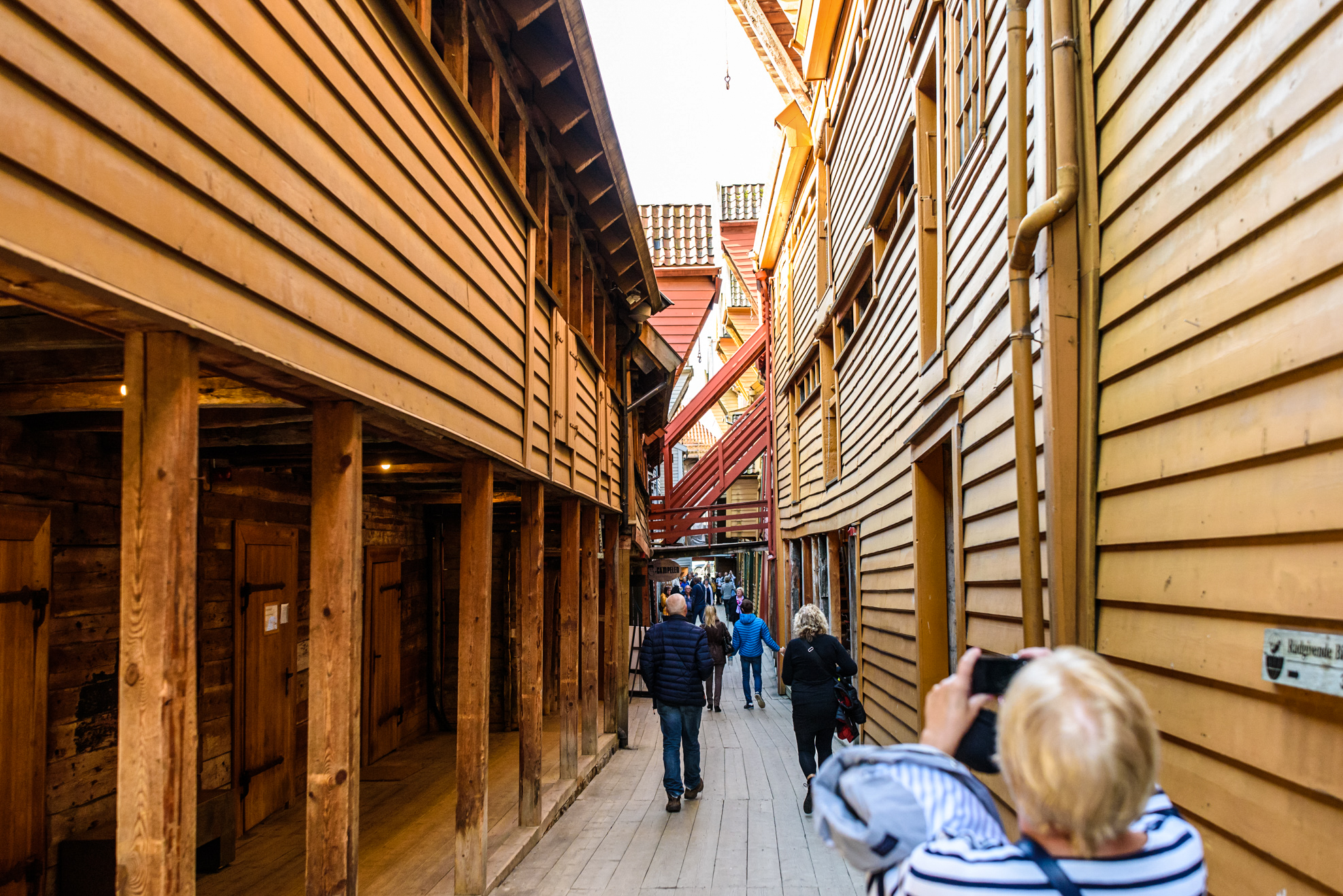 Todas las casas dentro de Bryggen tenían un pasillo común. En la actualidad algunos de los locales y hogares de aquella época se utilizan para oficinas o tiendas.