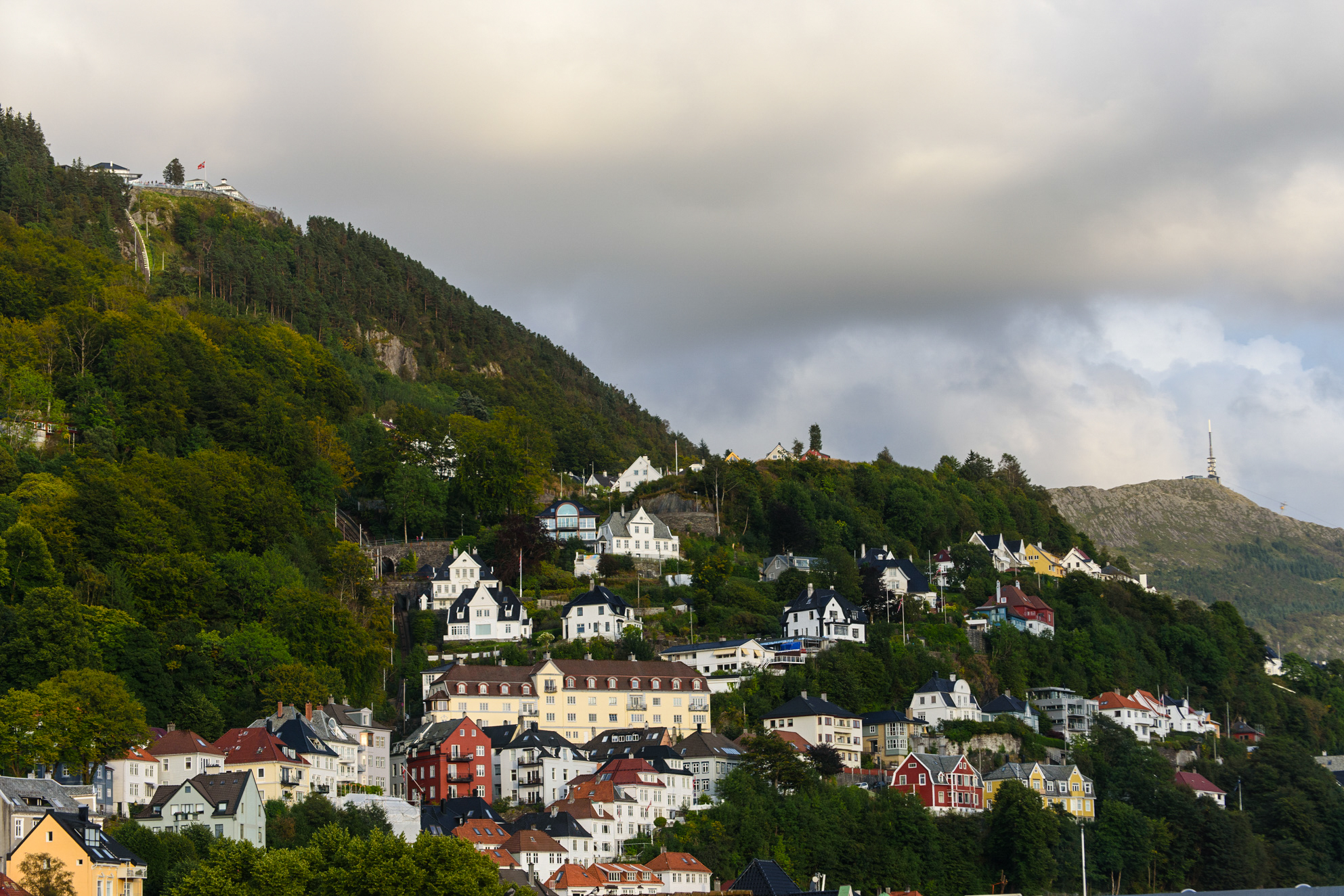 Bergen es famosa por las siete montañas que rodean el centro y el monte Fløyen, es la más famosa de las siete colinas que rodean la ciudad