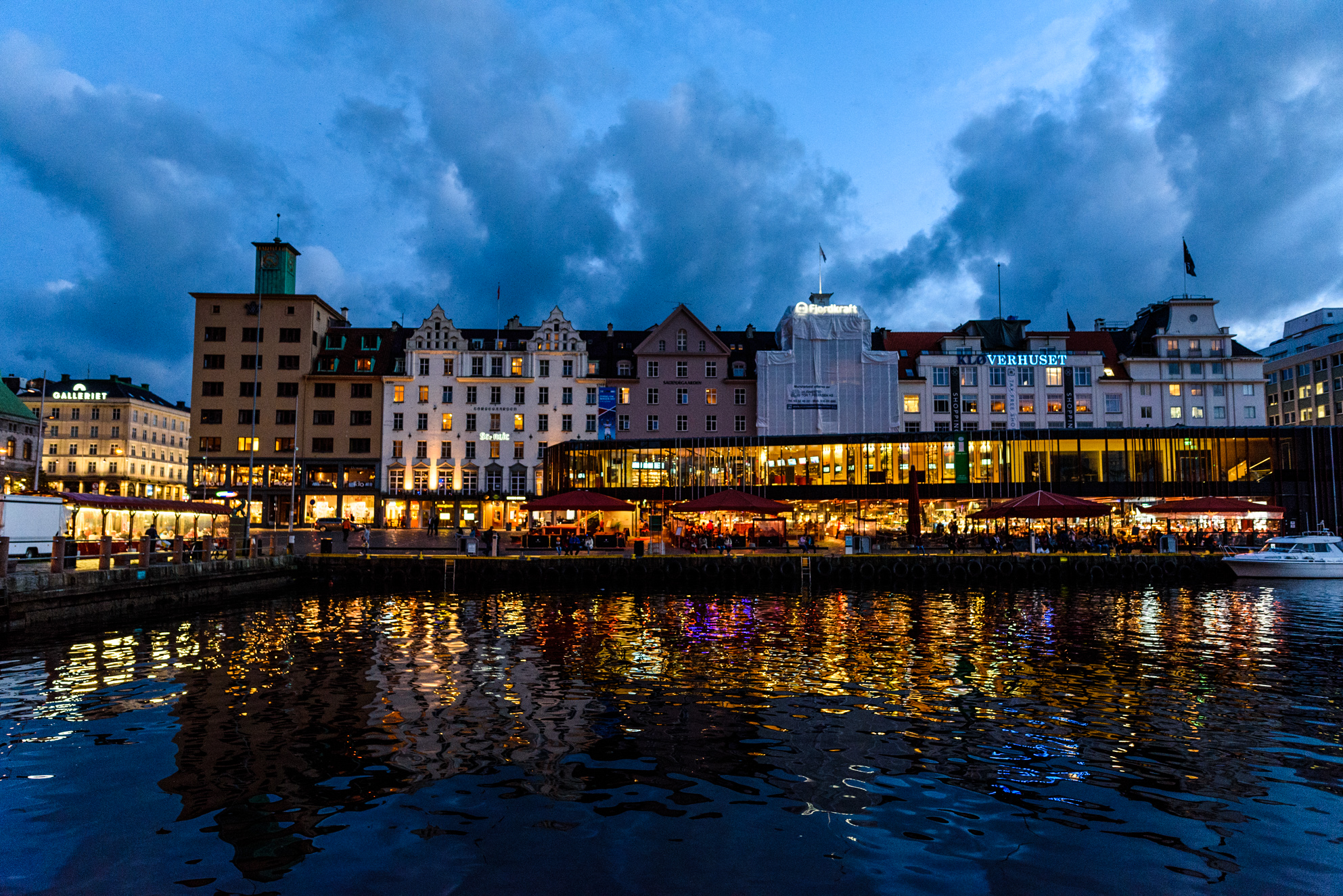 Al atardecer la belleza de Bergen aumenta si cabe. Las luces de los establecimientos y las casas se mezclan con los últimos rayos de Sol.