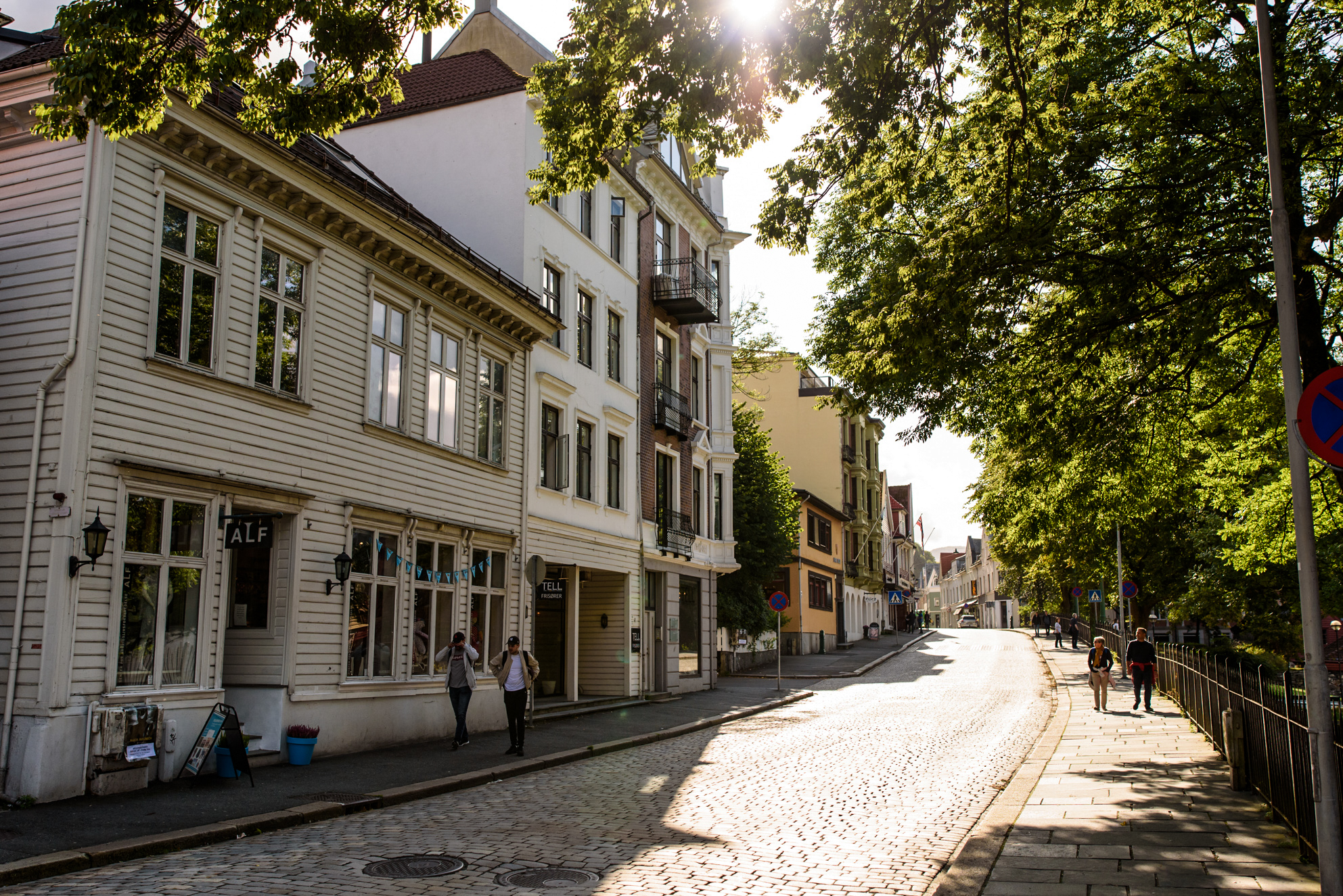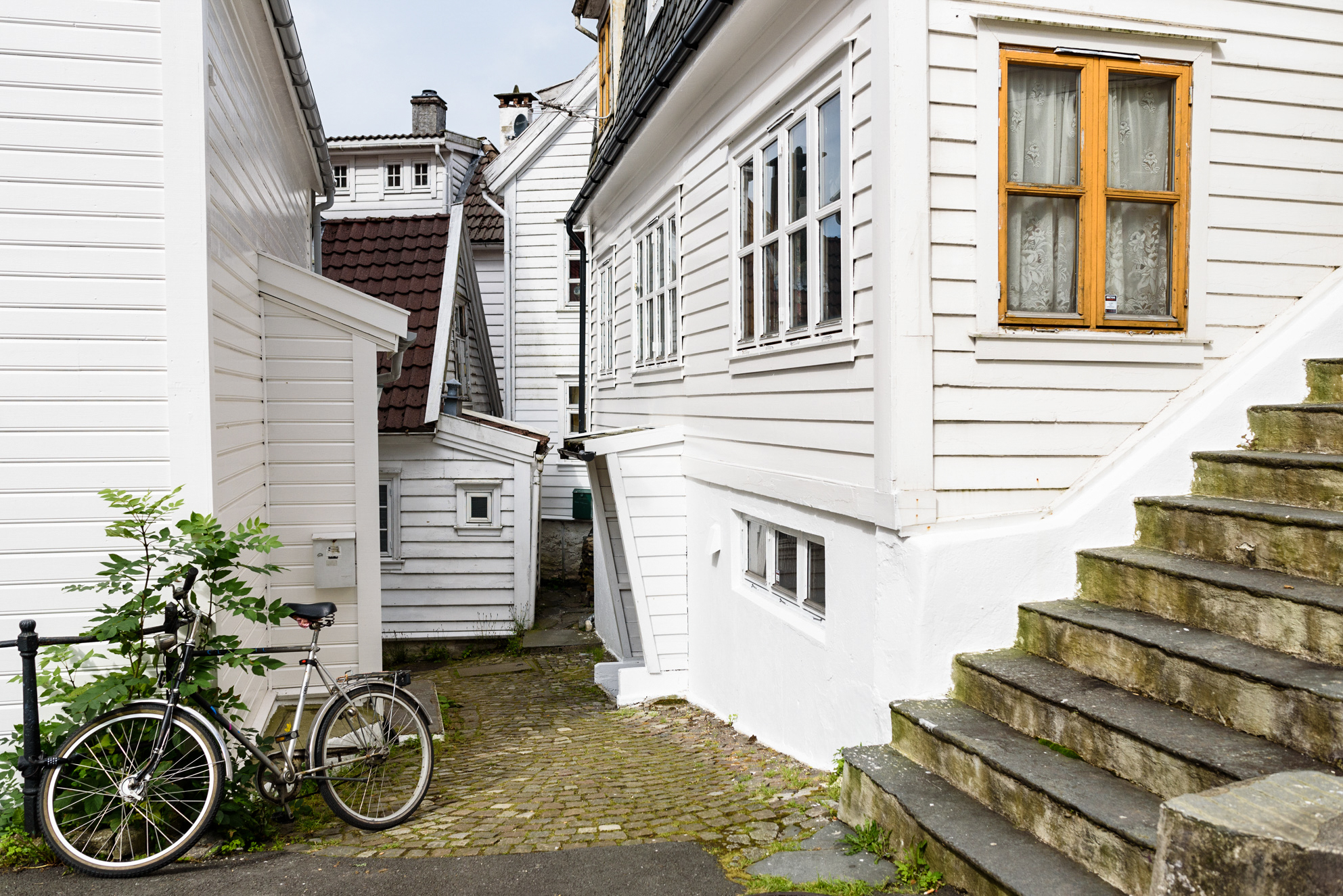 Unas decenas de metros fuera de Bryggen es posible perderse por otra zona de la ciudad de Bergen mucho más moderna y tranquila, más despejada de turistas. Al lado del edificio del funicular se abren calles como Lille Ovregaten donde apreciar el estilo arquitectónico y decorativo de muchas de sus casas.