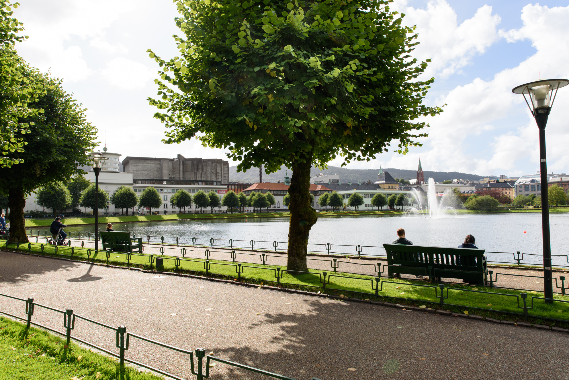 El lago Lille Lungegårdsvann uno de los puntos de la cuidad donde los habitantes de Bergen aprovechan cada minuto de sol para poder pasear, correr o montar en bicicleta disfrutando de algo de calor.