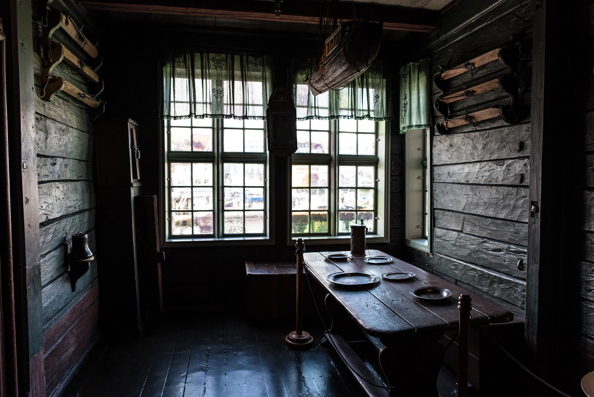 En el interior de una de las casas de Bryggen. Durante esta época no existían velas ni lámparas ya que siempre tenían miedo de los incendios. Vivían en una sociedad fría, incómoda.