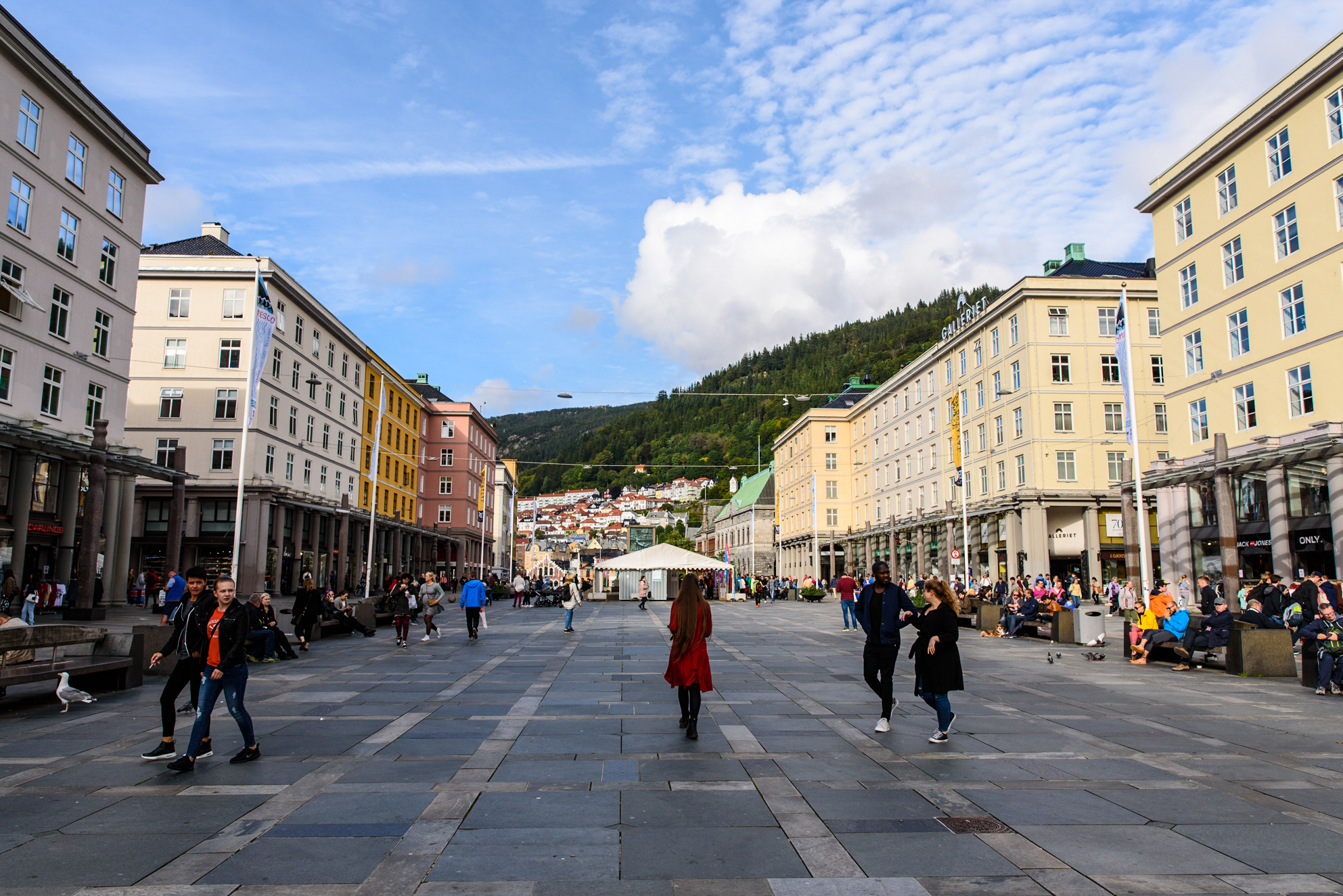 Torgallmenningen, es la plaza de Bergen. Algo así como la plaza mayor de la ciudad.