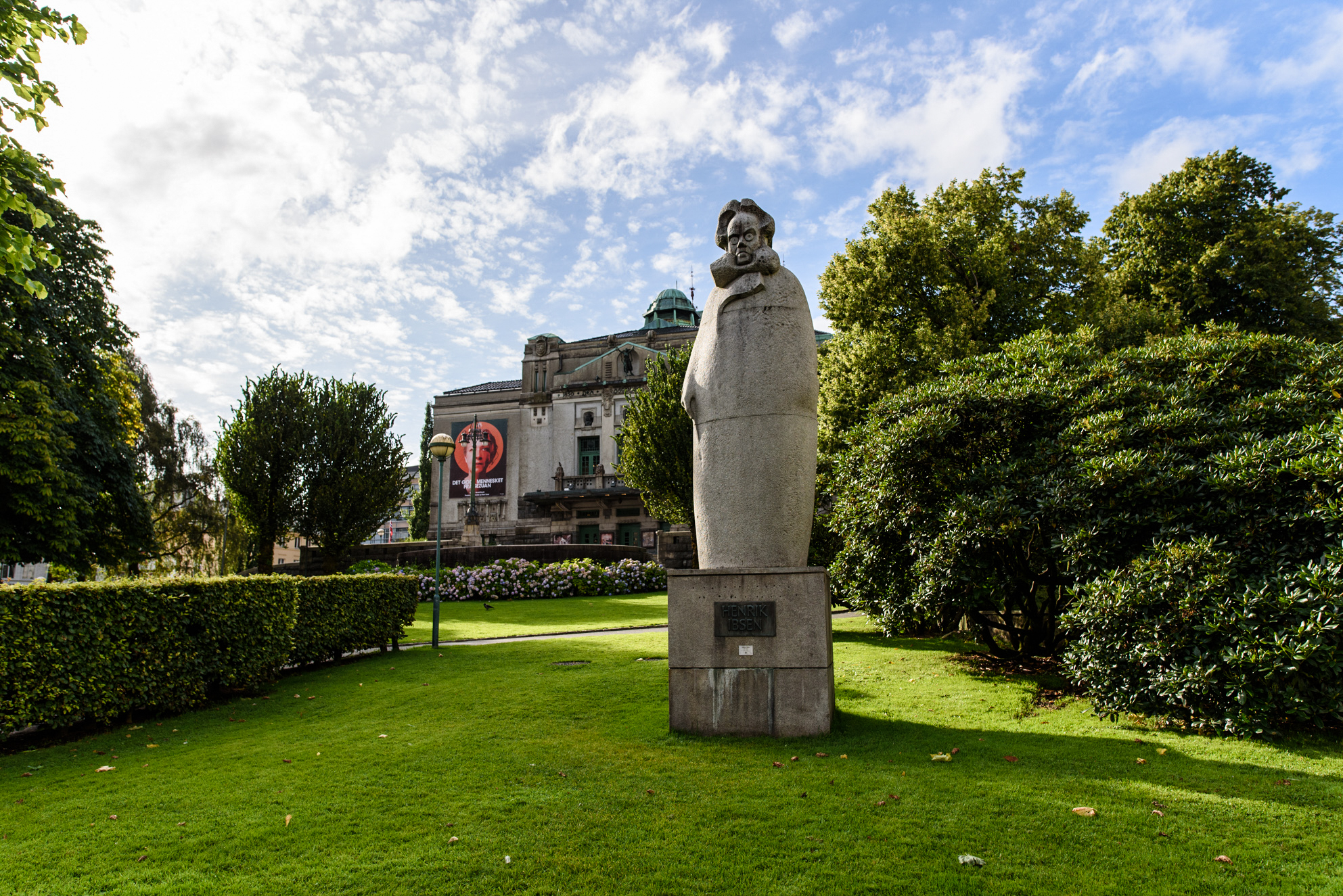 Una estatua de Henrik Ibsen, el más importante dramaturgo noruego, a pocos metros del Teatro Nacional.