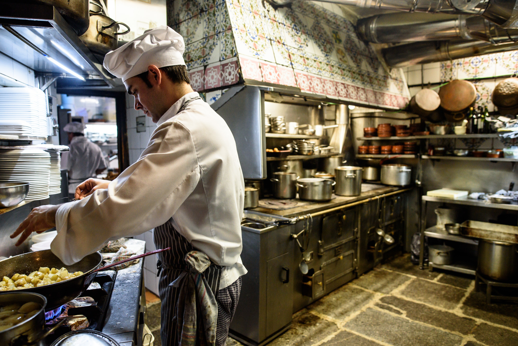 Su fachada de ladrillo, sus puertas y ventanas de madera ya son historia viva de Madrid y de España. El restaurante Casa Botín no está entre los más vanguardistas del mundo, uno de esos locales donde el concepto de la gastronomía molecular es lo más buscado, ni tampoco en su cocina de 1725 se guisa con nitrógeno líquido. Su esencia se fundamenta en su estilo tradicional, conservado con mimo y cariño durante siglos y que atrae a castizos y no tanto, turistas o curiosos por miles. Clasificado como el restaurante más antiguo del mundo por el Libro Guinness de los Récords, entramos hasta la cocina de Botín.
