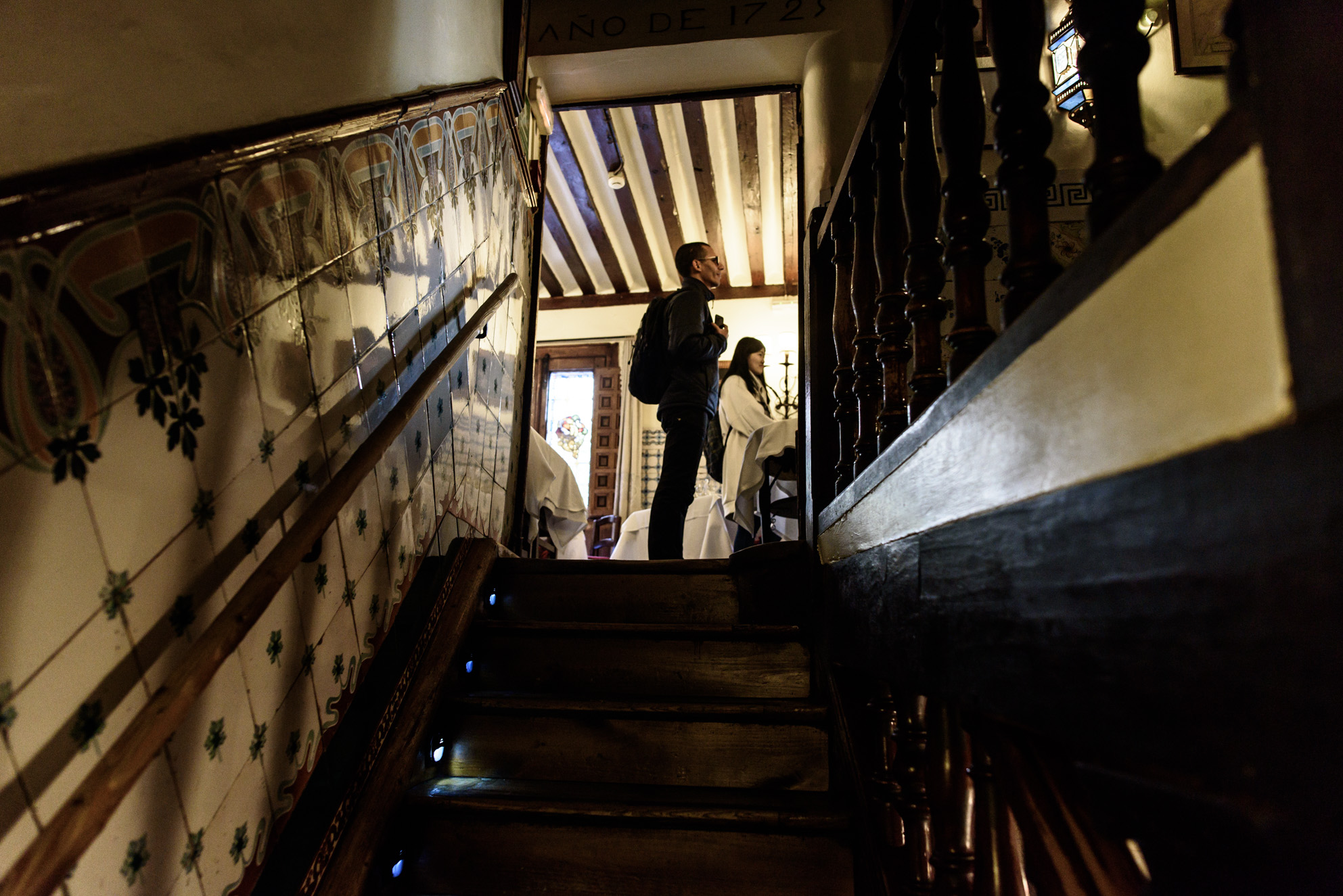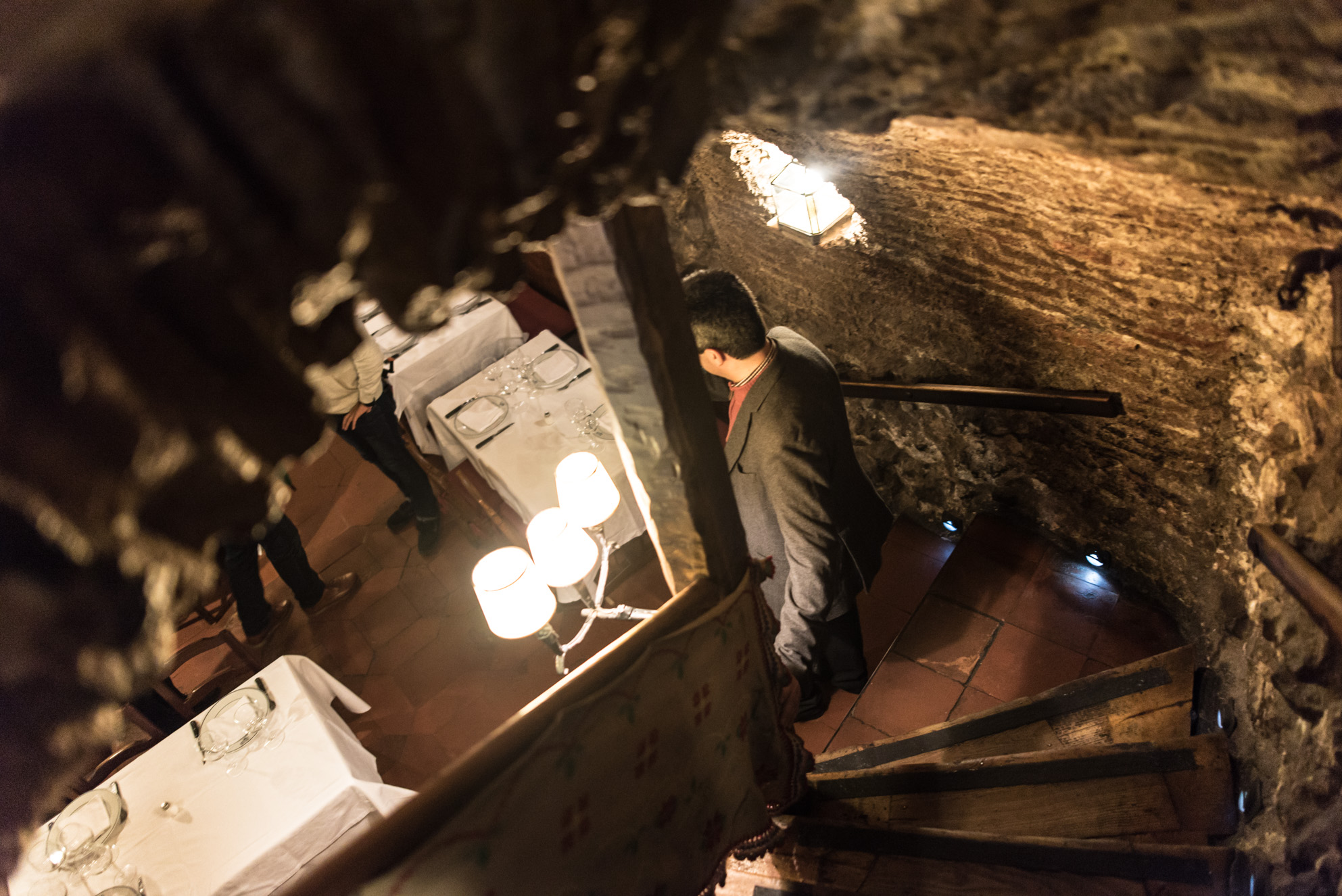 Bajando por la centenaria escalera que lleva a la antigua bodega, actualmente reconvertida a salón comedor.
