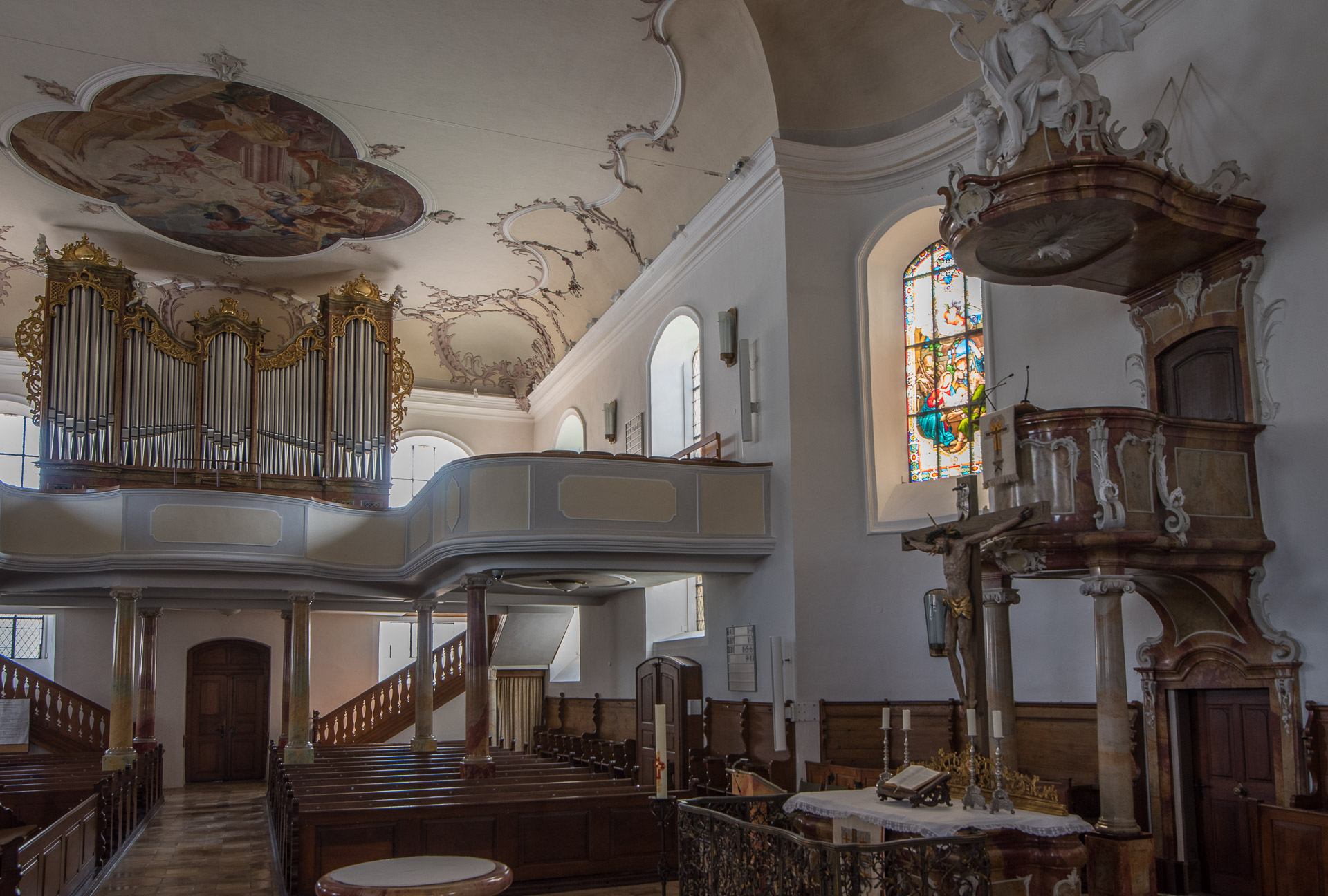 La pequeña pero encantadora iglesia de Aalen es al mismo tiempo sencilla y barroca.