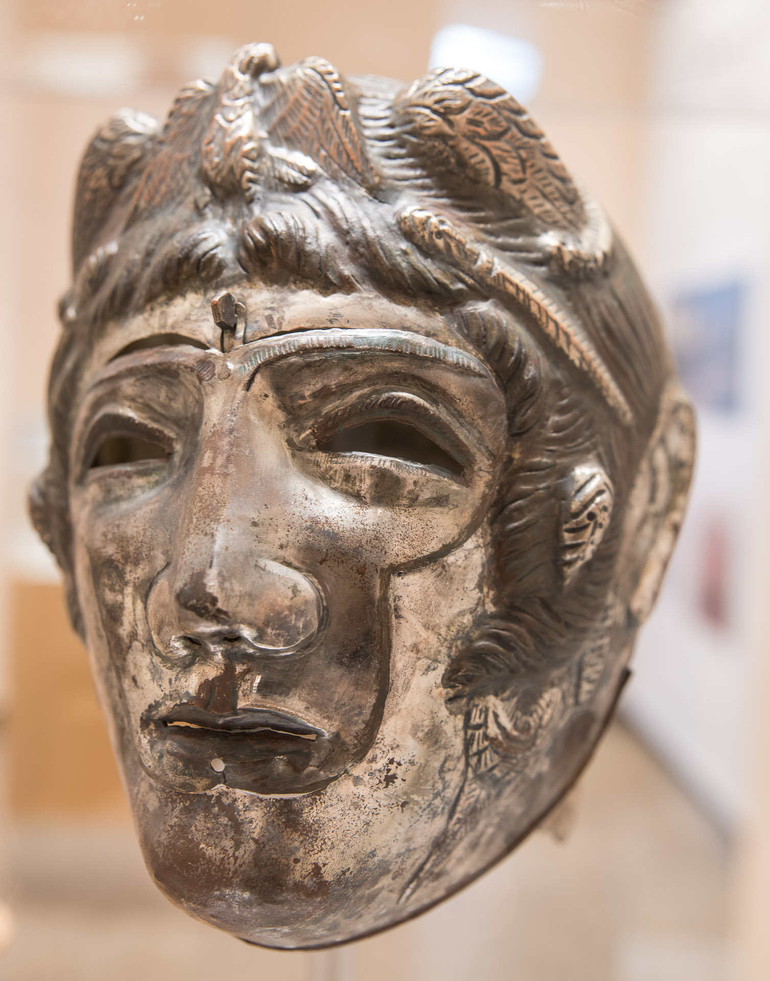 Una bellísima máscara militar, con toda seguridad un caballero, en el Limesmuseum.
