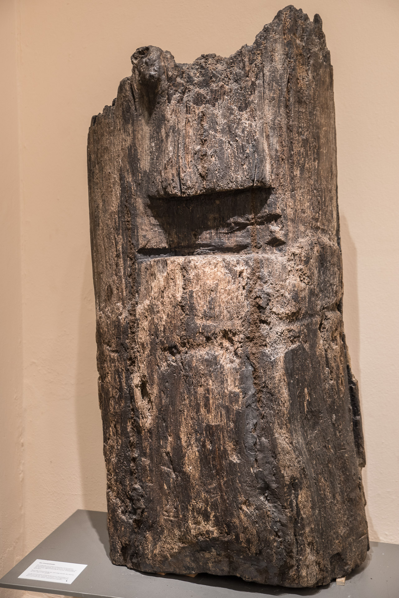 Una parte de un tronco de madera con los que estaba construida la empalizada que marcaba la frontera.