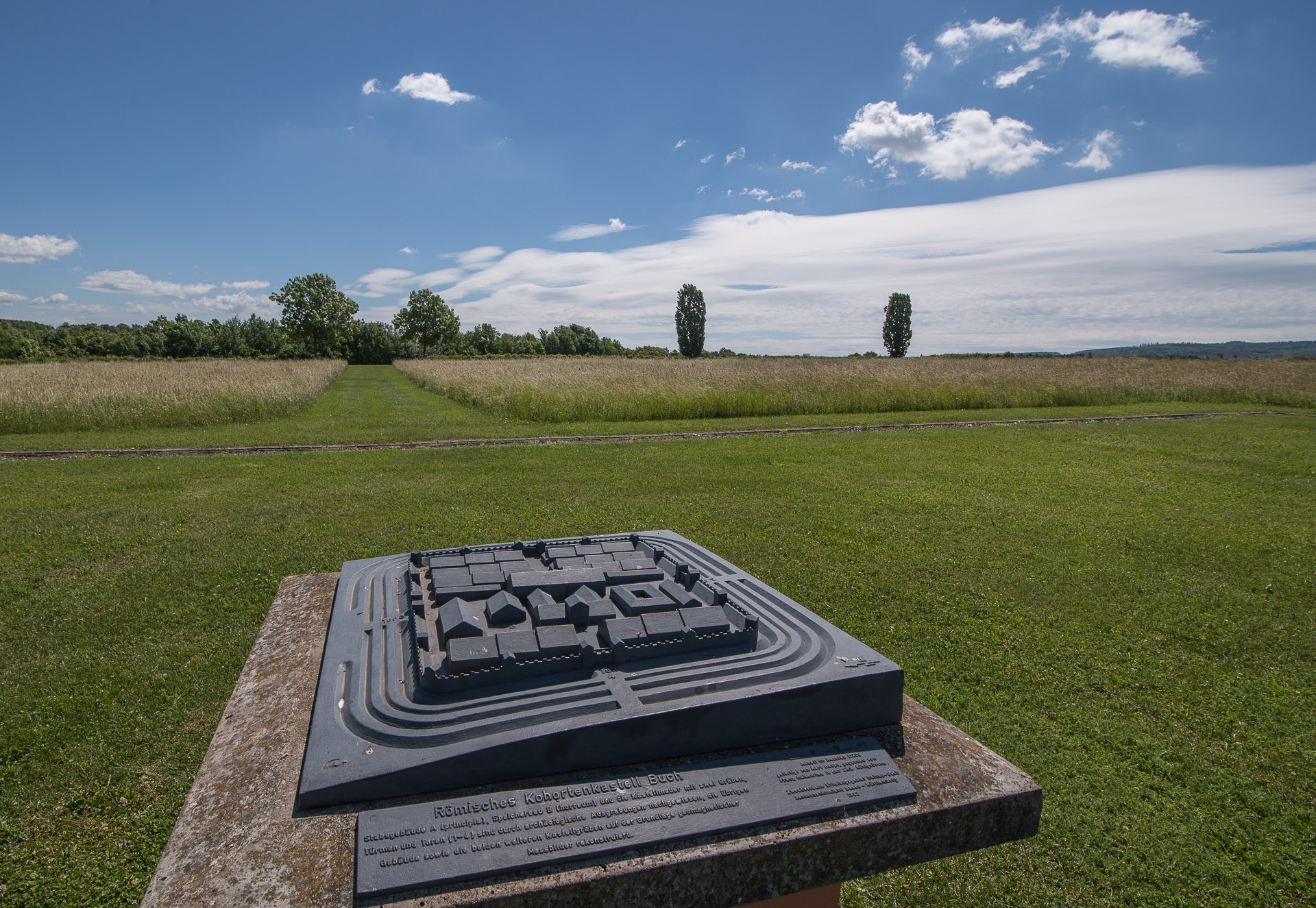 Un pequeño camino entre campos de cultivo nos lleva a la Limestor, un arco del triunfo romano también en Rainau.