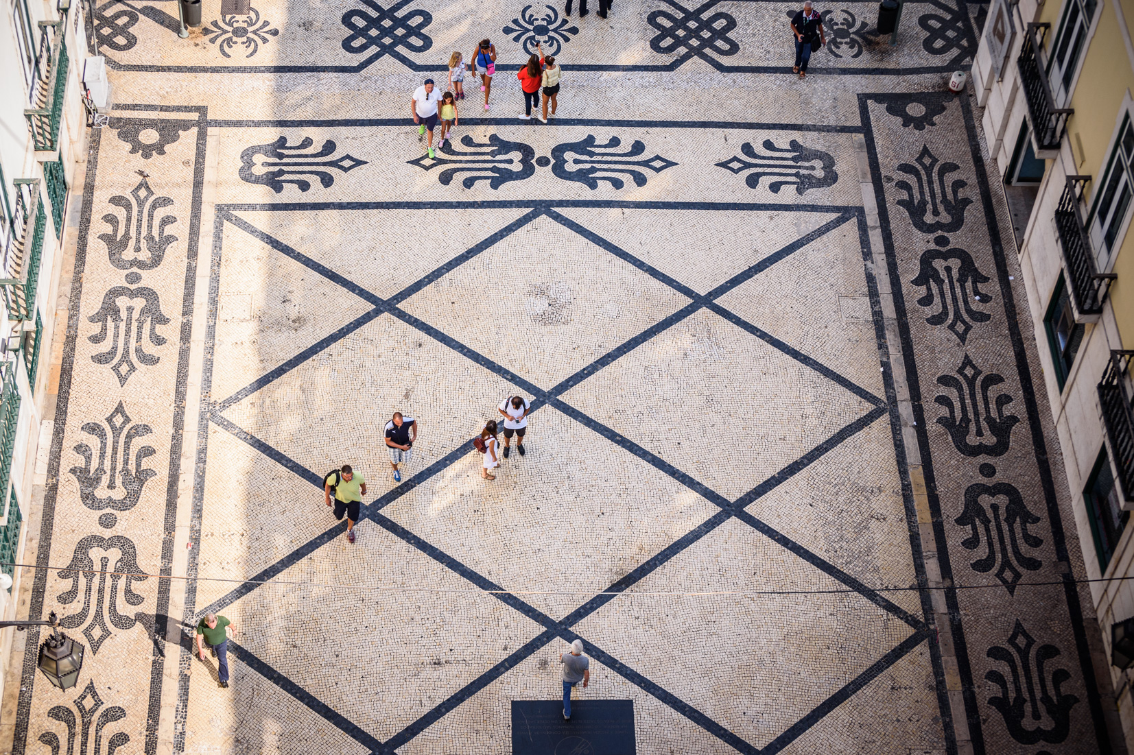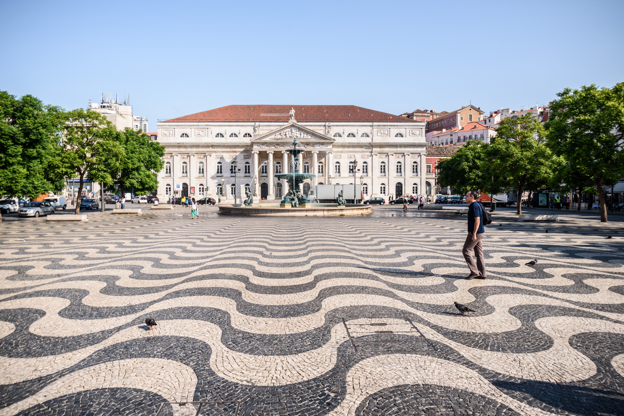 La plaza del Rossio. En el suelo, los dibujos con el empedrado portugués.
