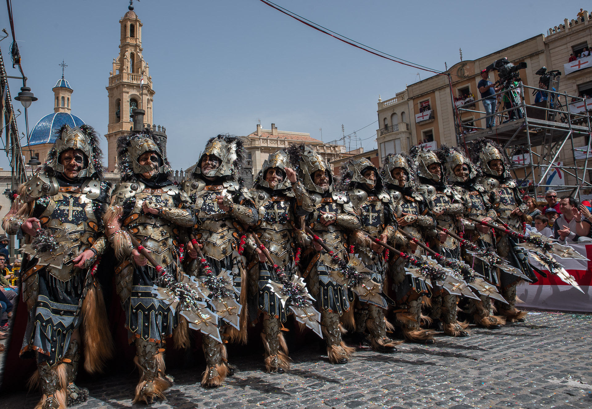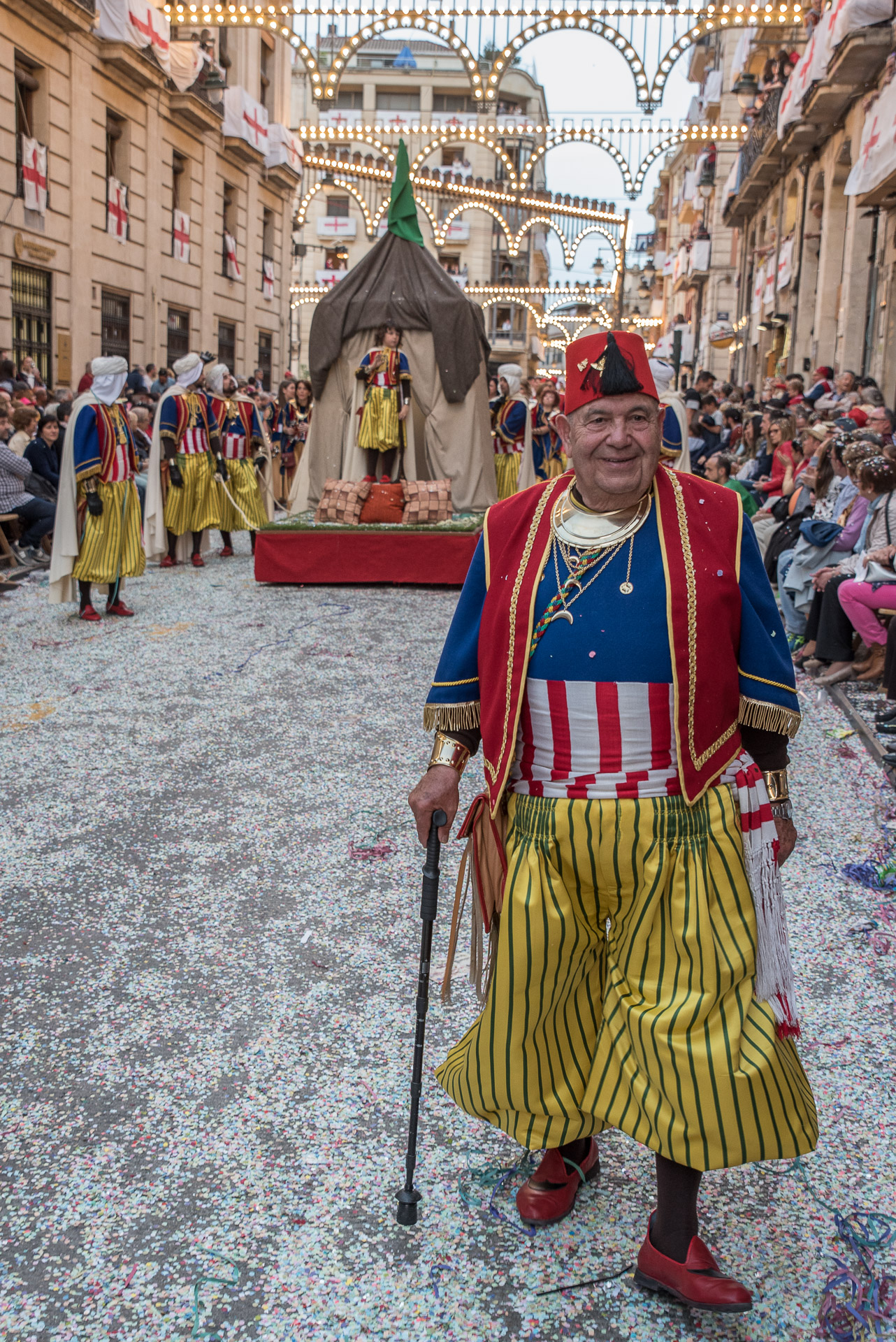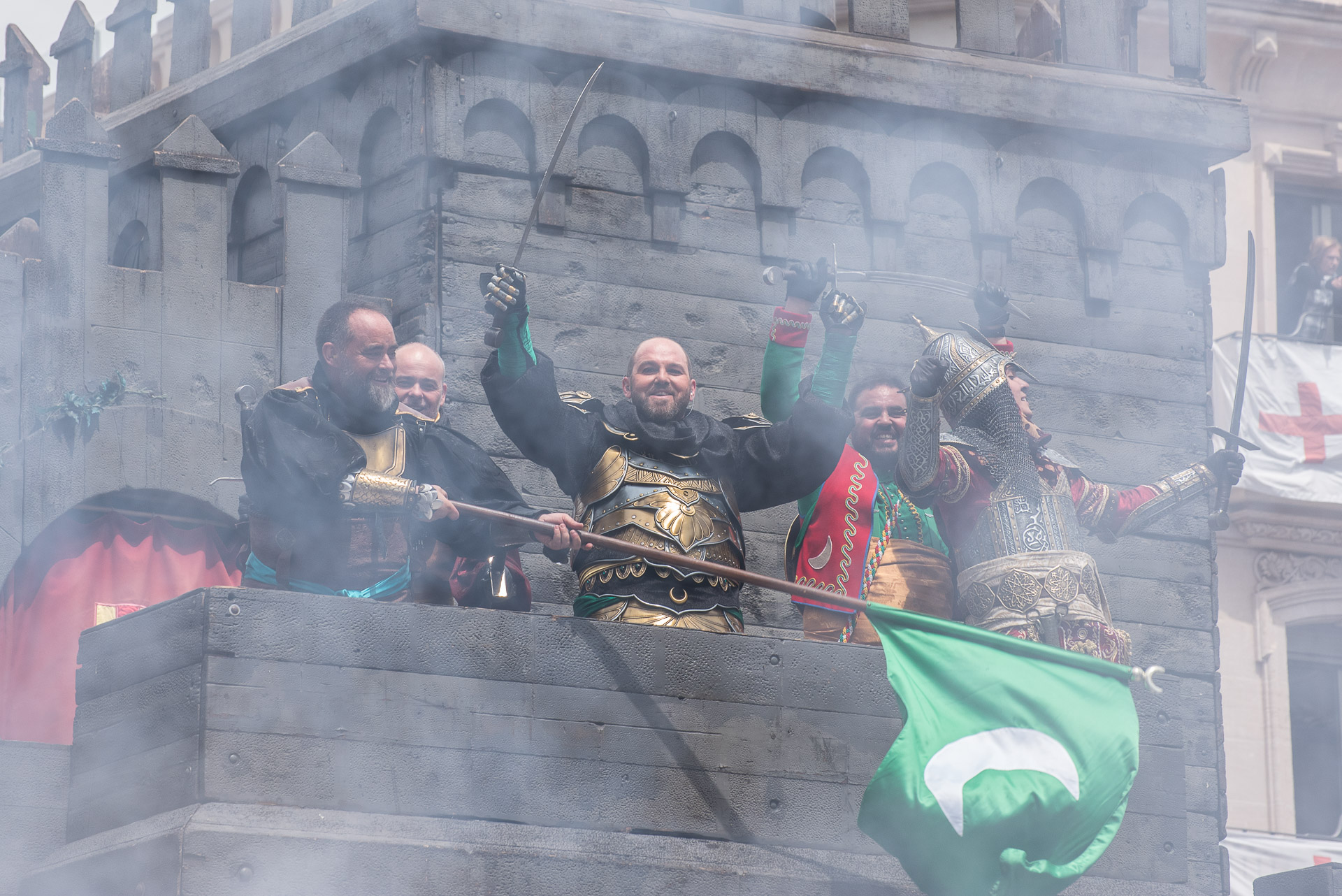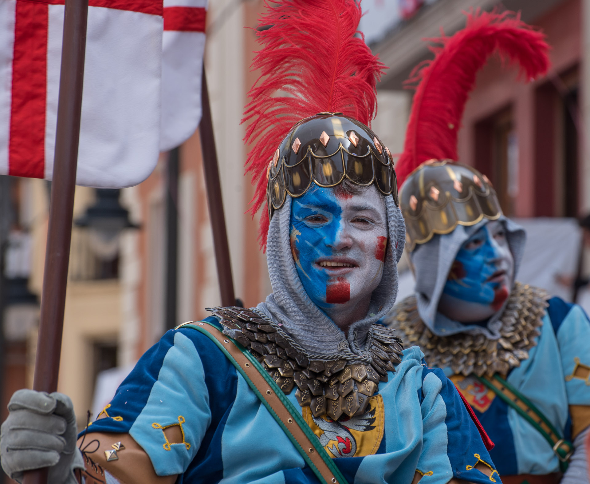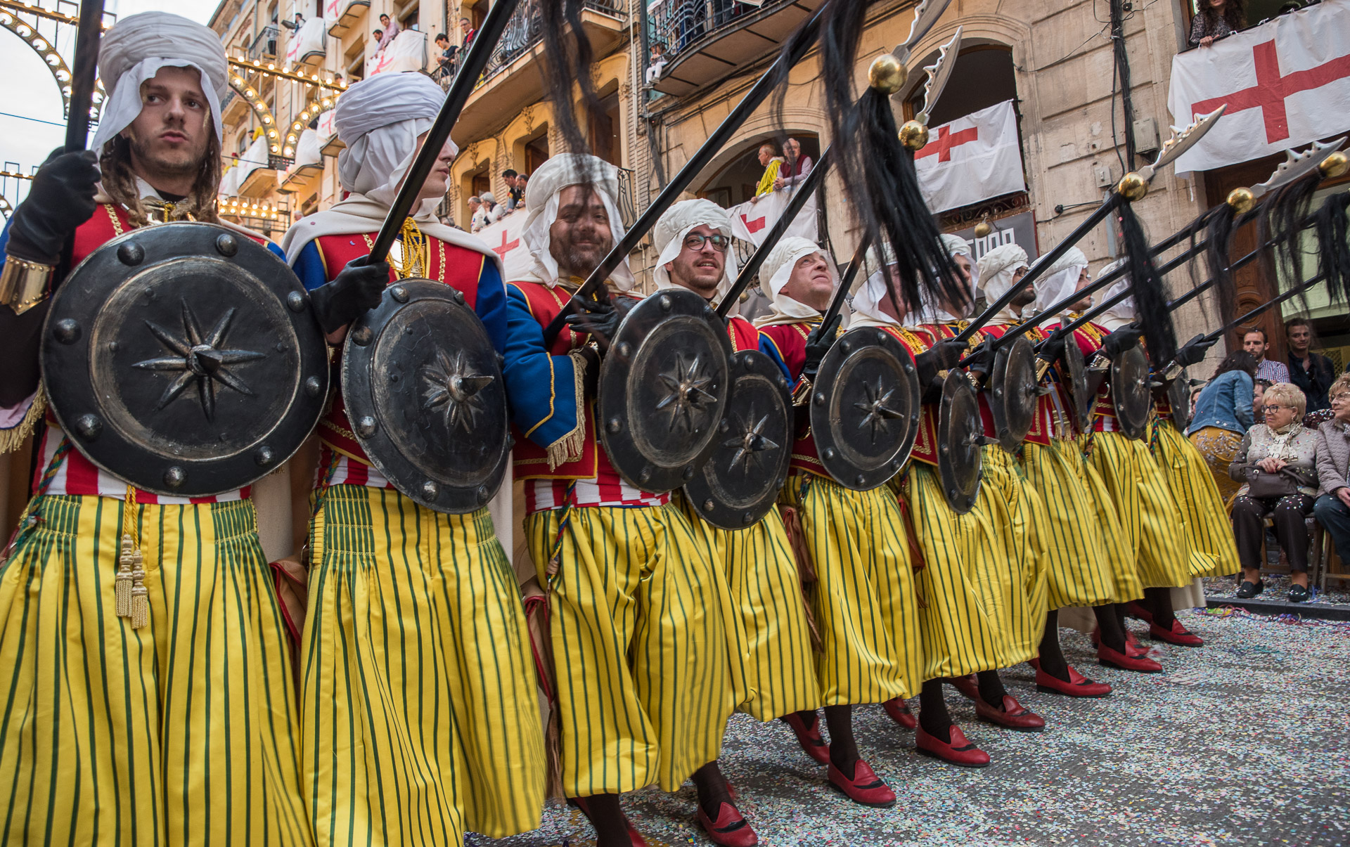 Fieros guerreros del bando cristiano que llenan la calle de color y de un aire amenazante, aunque probablemente sus trajes no habrían sido muy cómodos en una guerra de verdad.