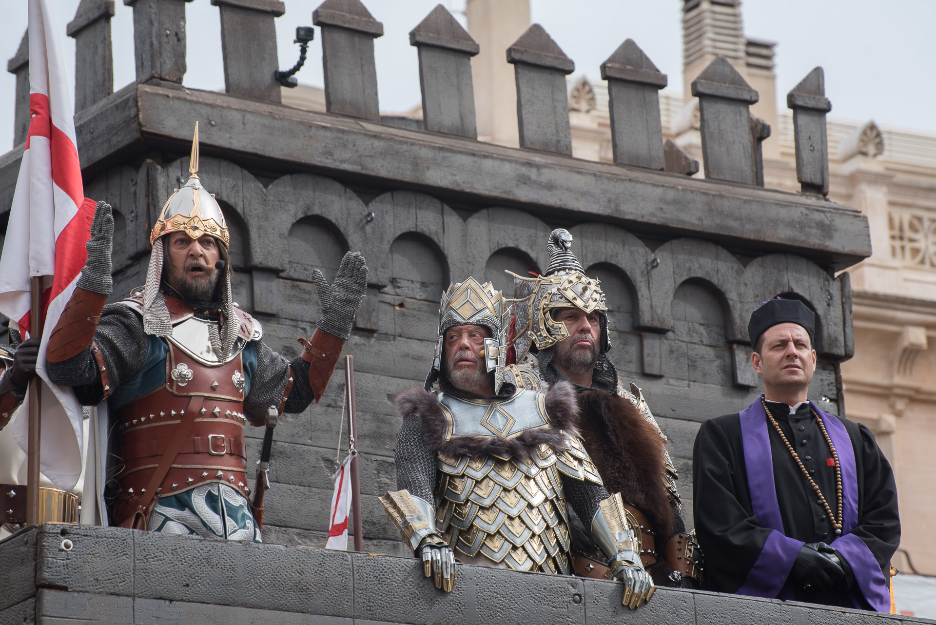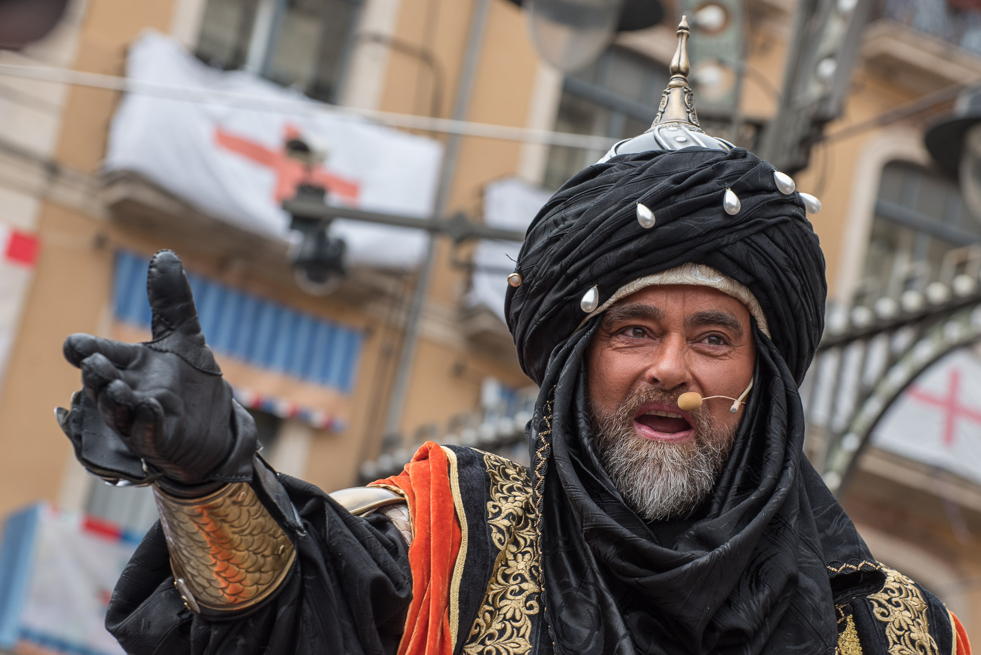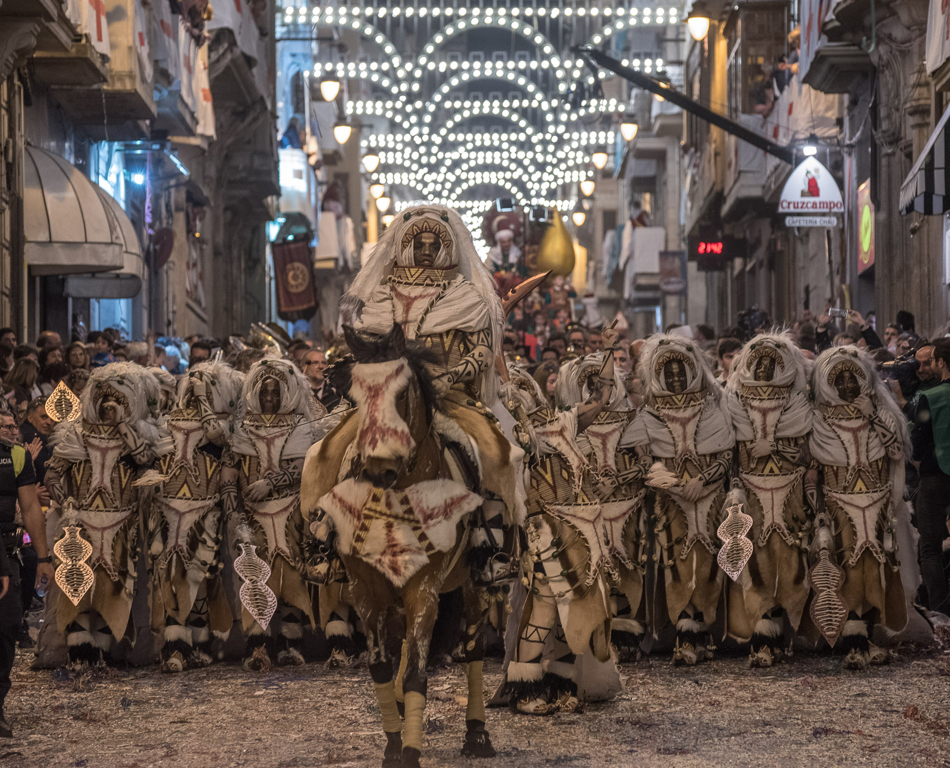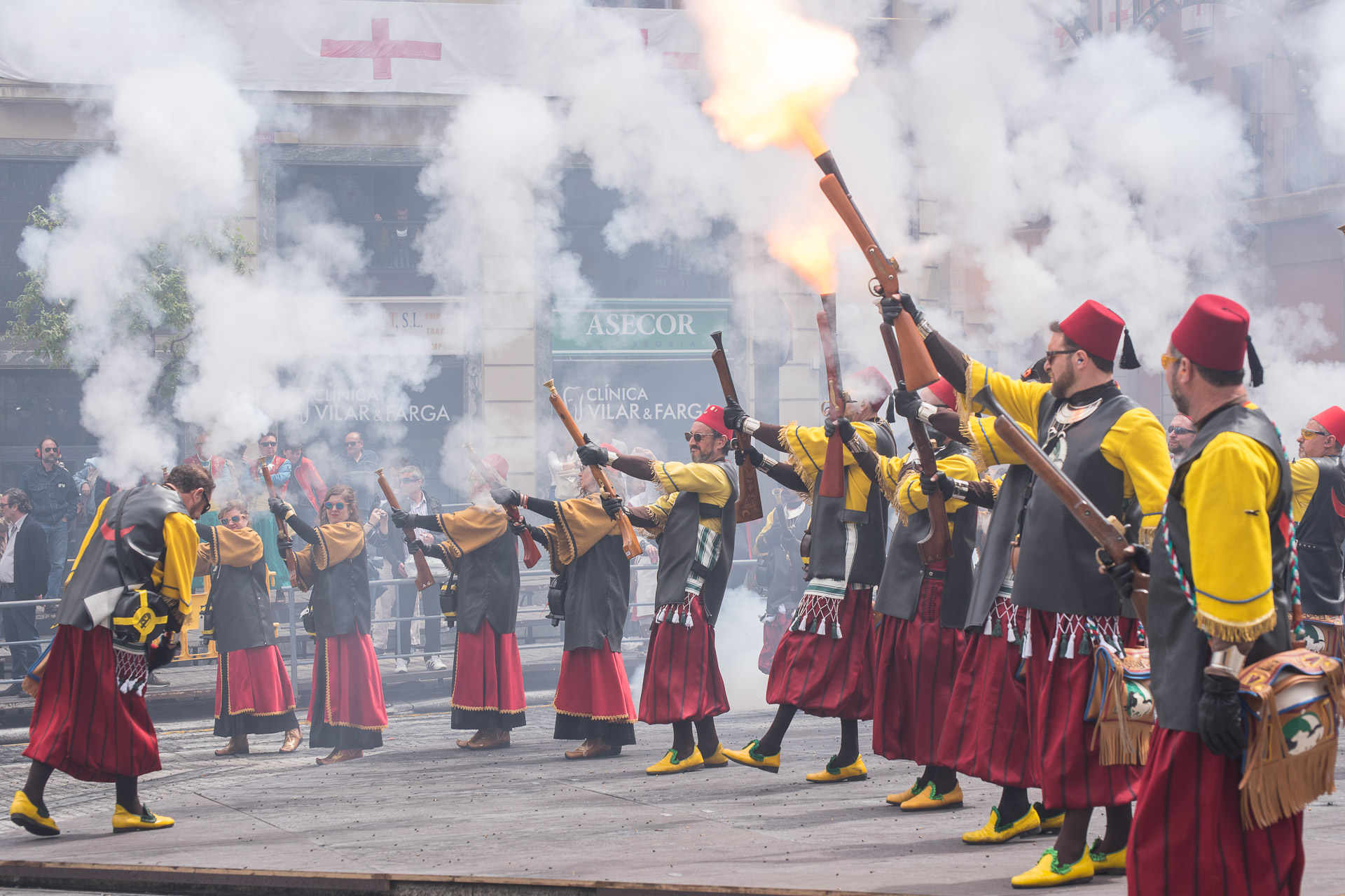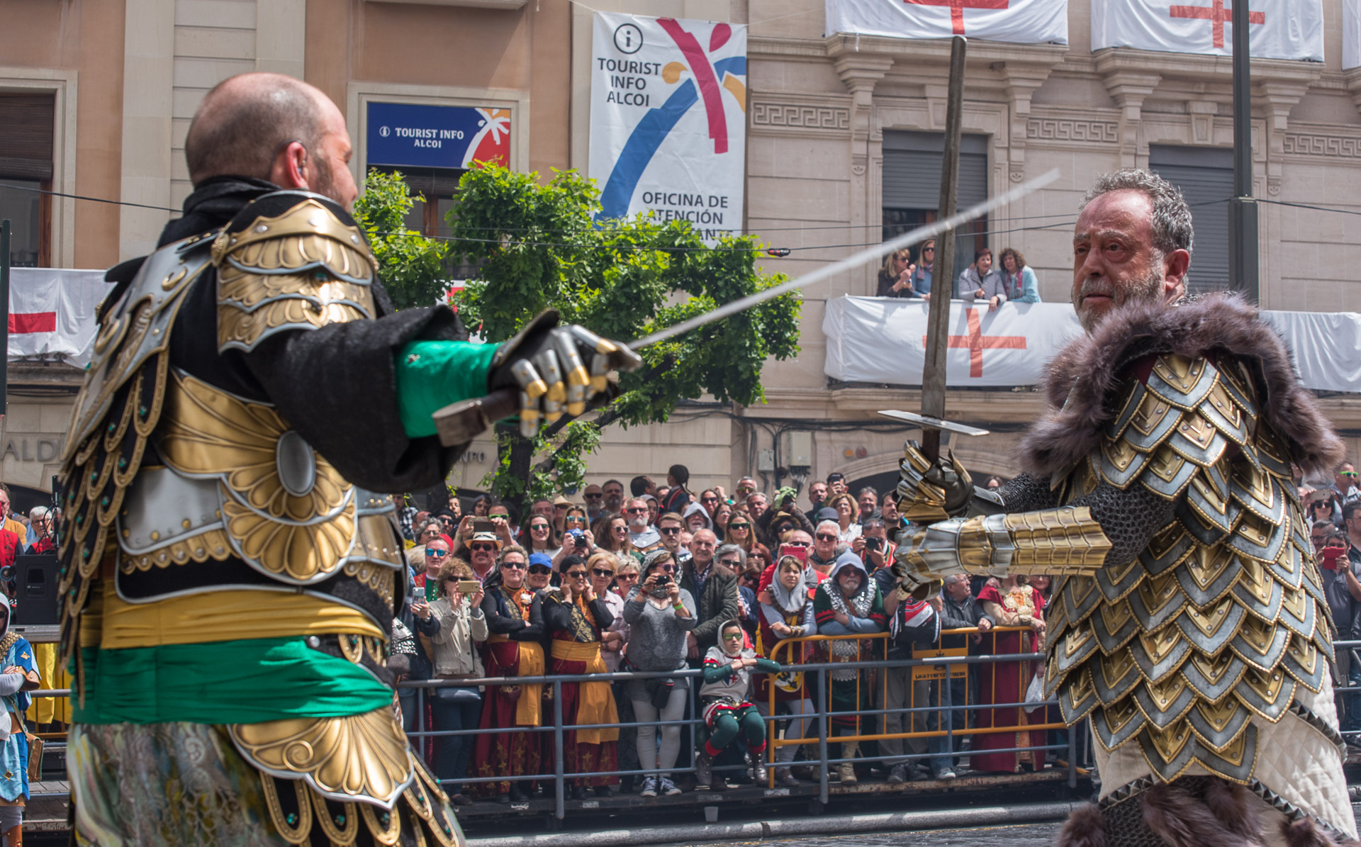 Fieros guerreros del bando cristiano que llenan la calle de color y de un aire amenazante, aunque probablemente sus trajes no habrían sido muy cómodos en una guerra de verdad.