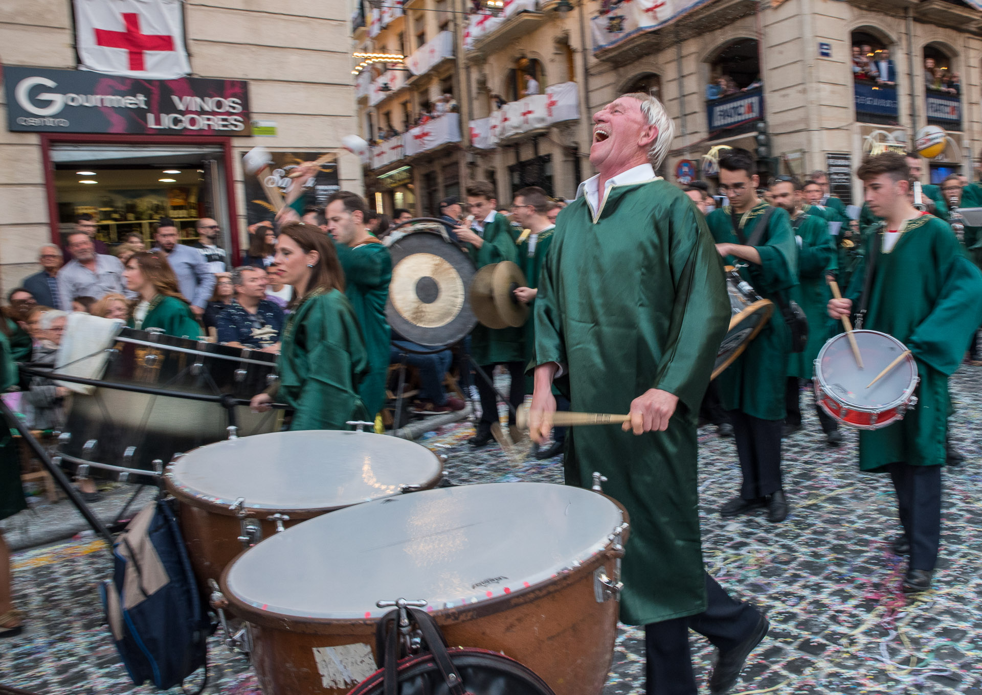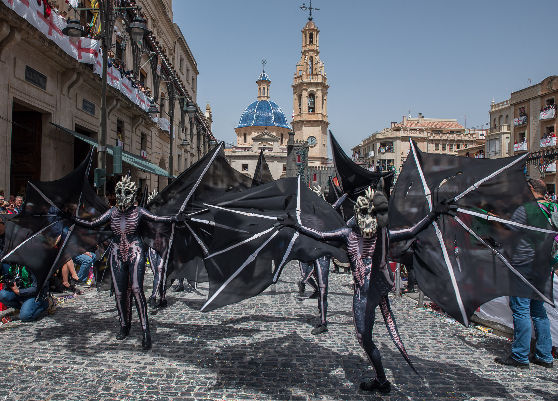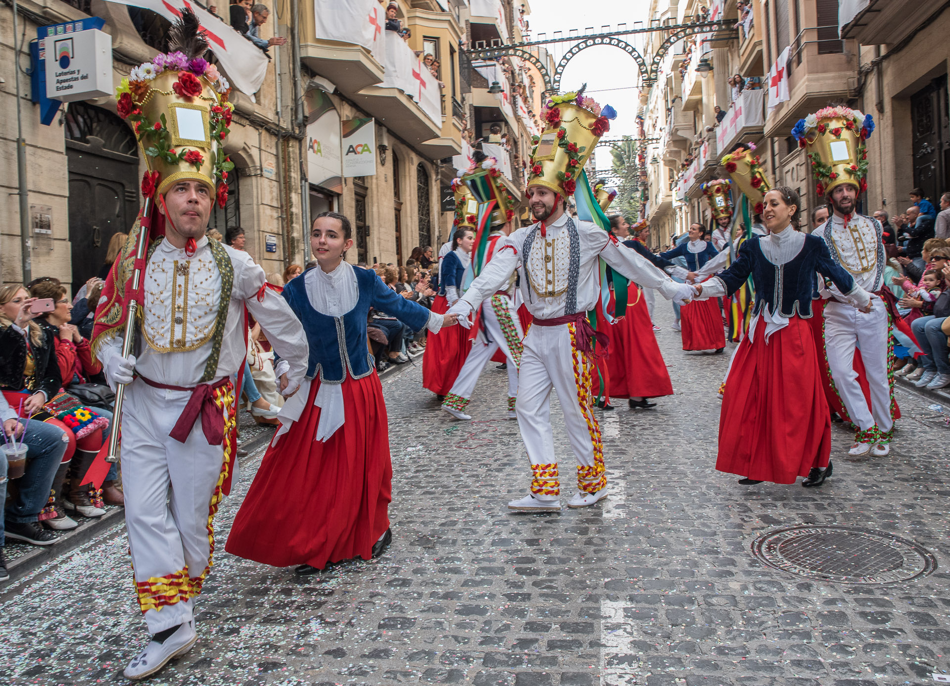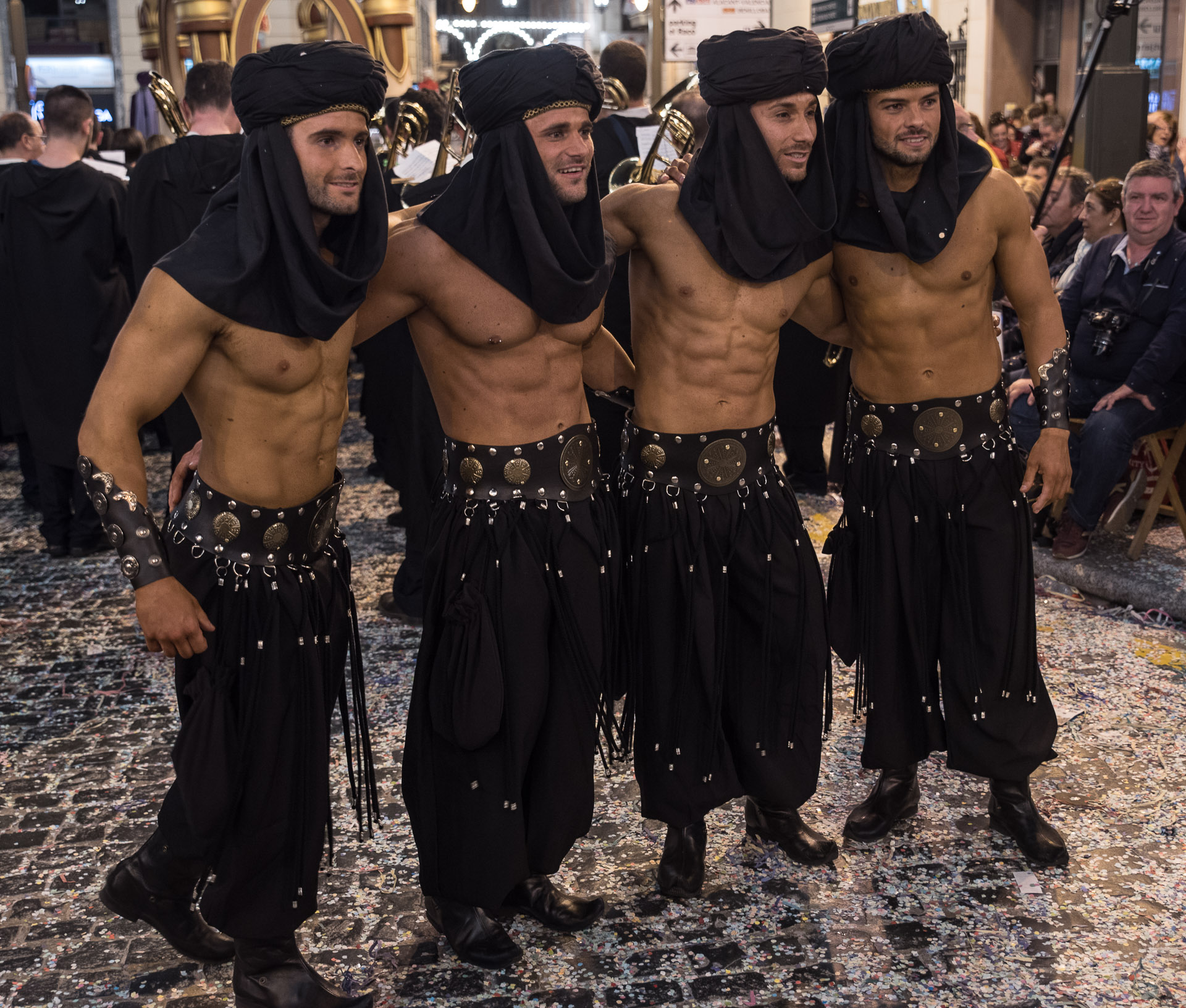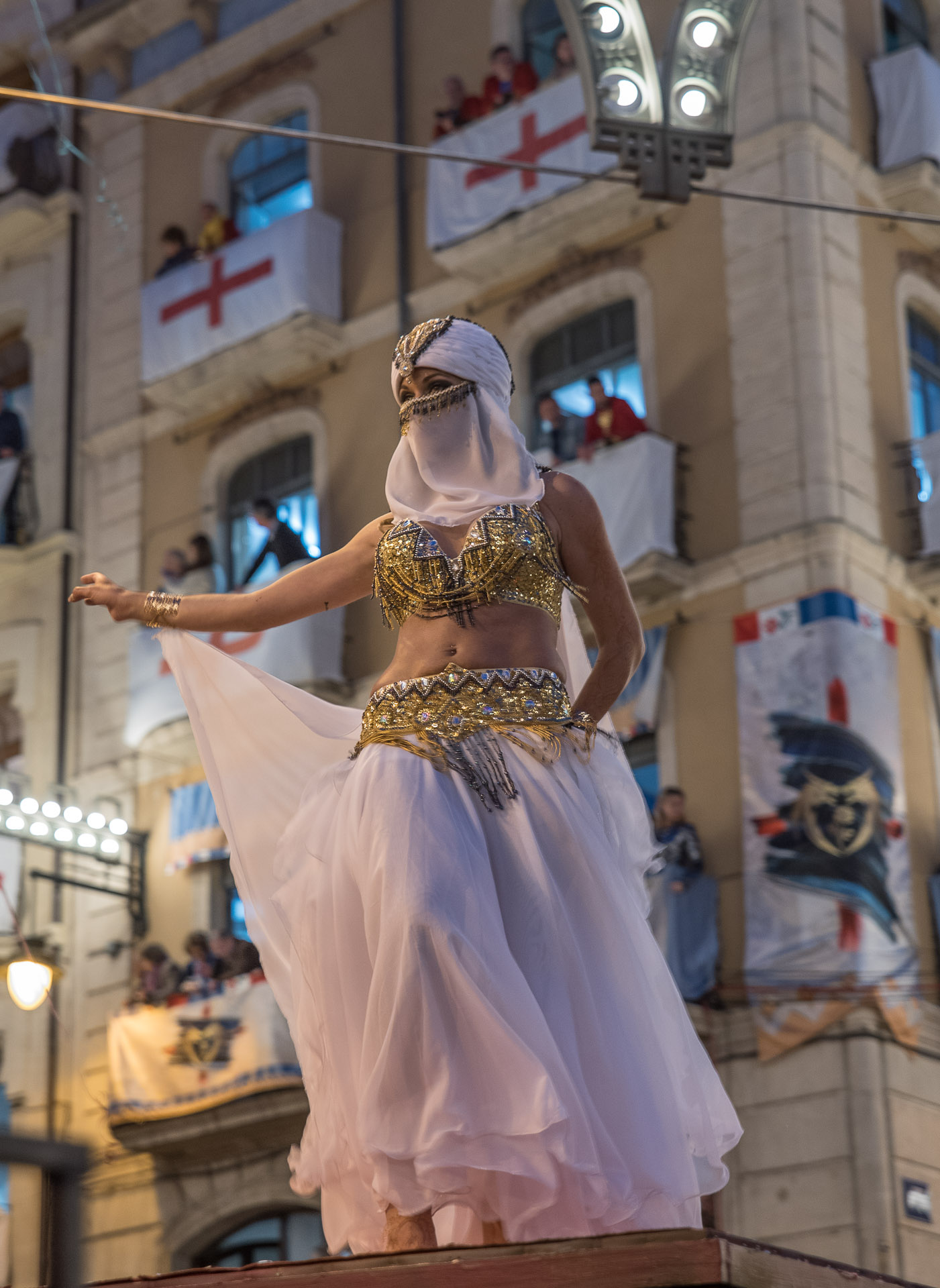 Fieros guerreros del bando cristiano que llenan la calle de color y de un aire amenazante, aunque probablemente sus trajes no habrían sido muy cómodos en una guerra de verdad.