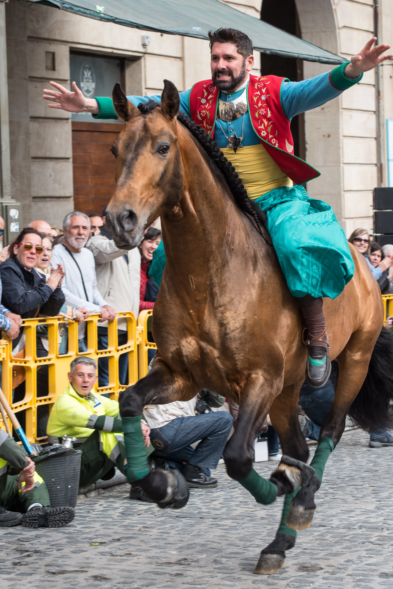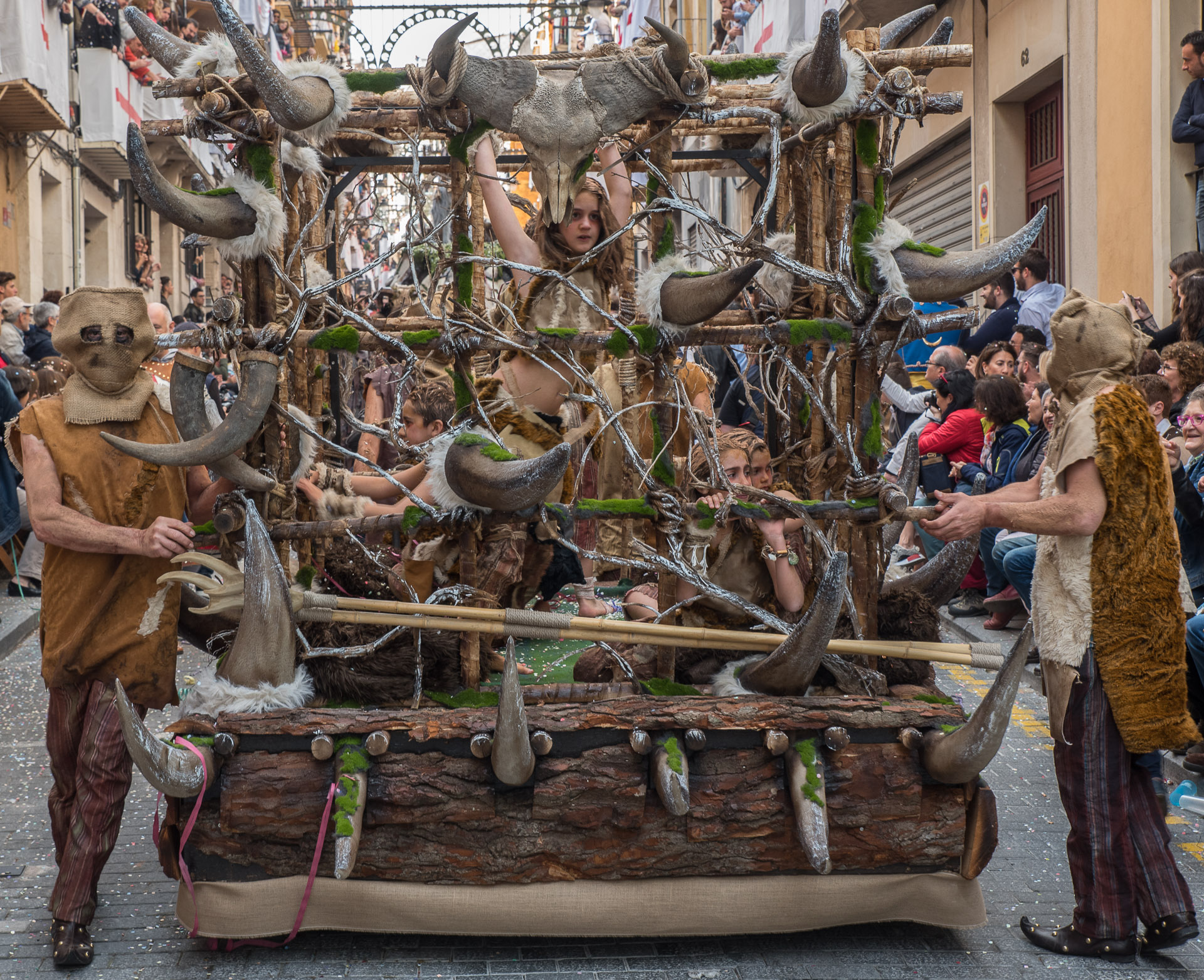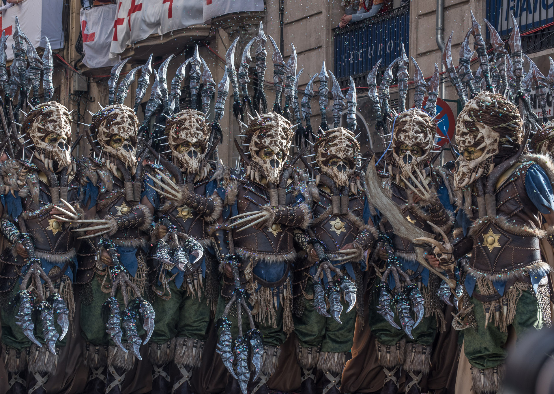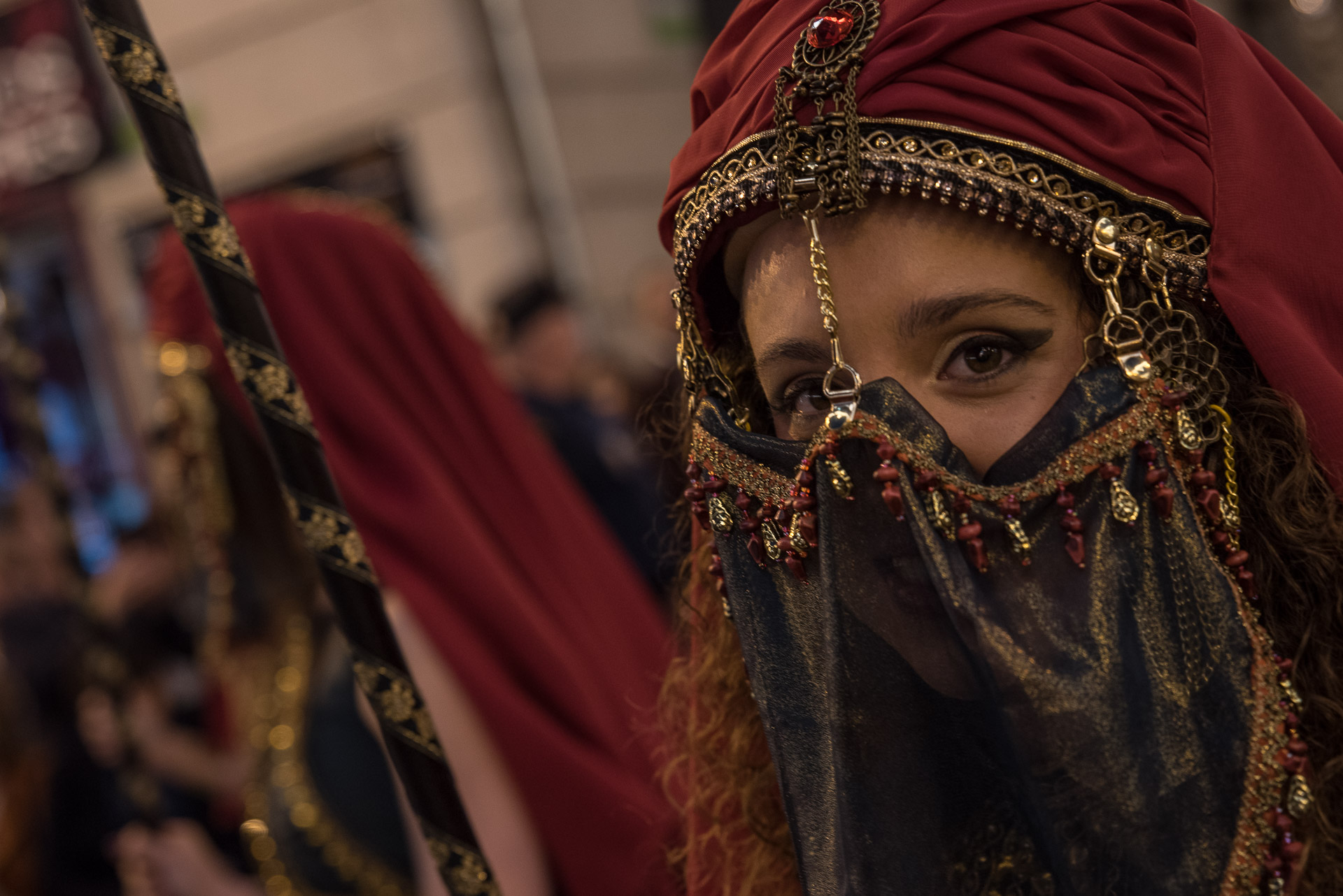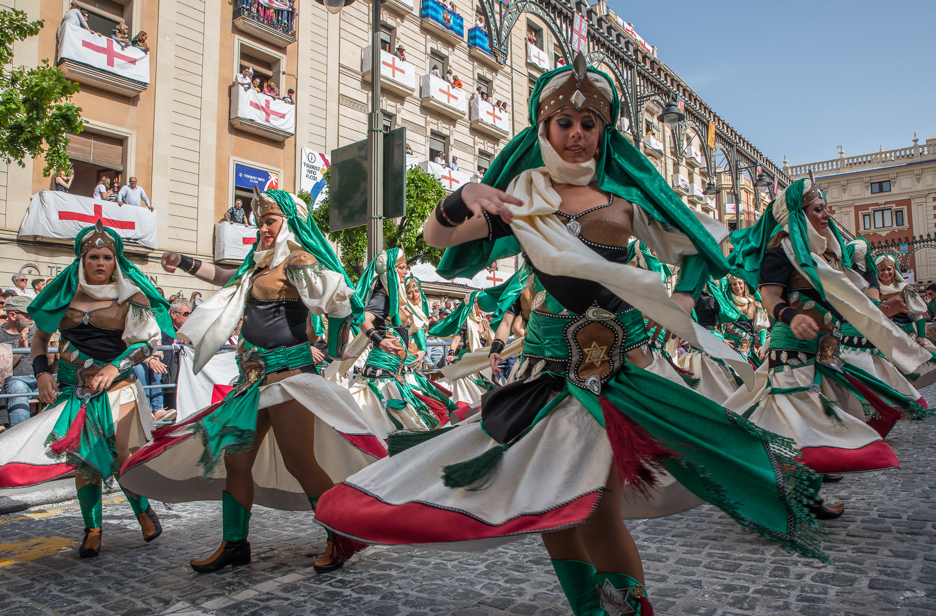 Fieros guerreros del bando cristiano que llenan la calle de color y de un aire amenazante, aunque probablemente sus trajes no habrían sido muy cómodos en una guerra de verdad.