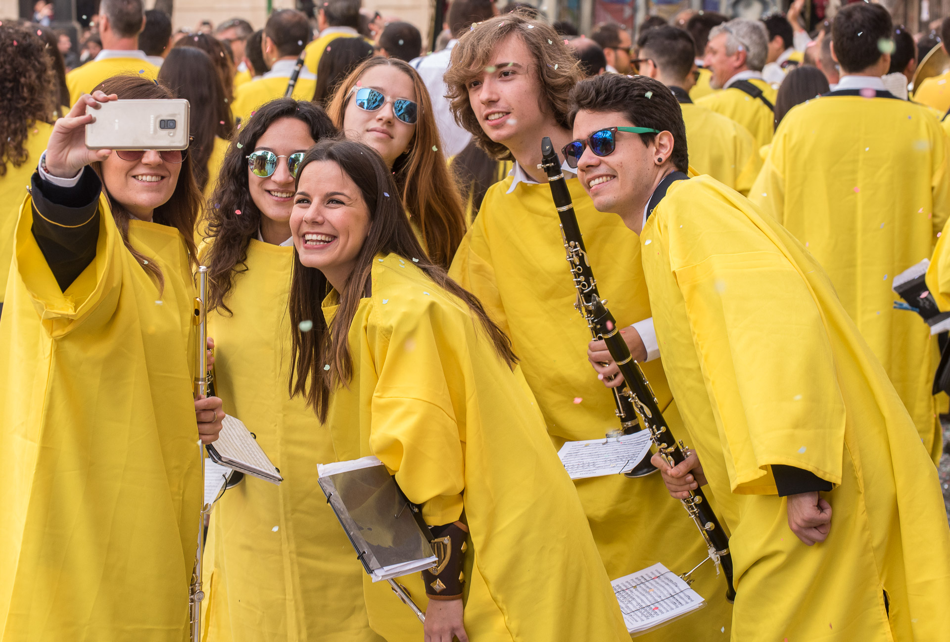 Los músicos y la música son una parte esencial de la fiesta y para muchos de los que tocan durante las entradas también es algo divertido y, como vemos en la imagen, una buena ocasión que inmortalizar en un selfi.