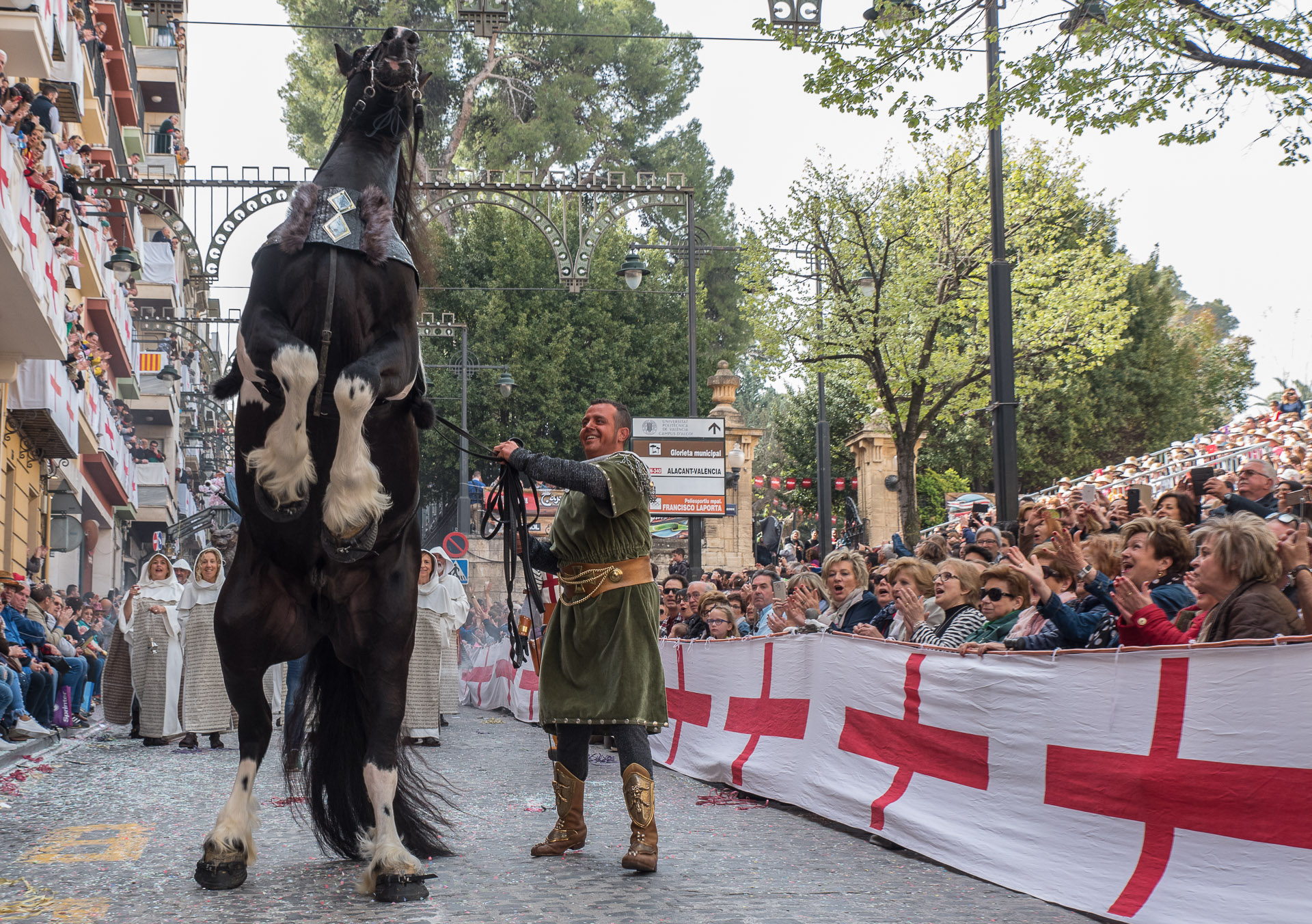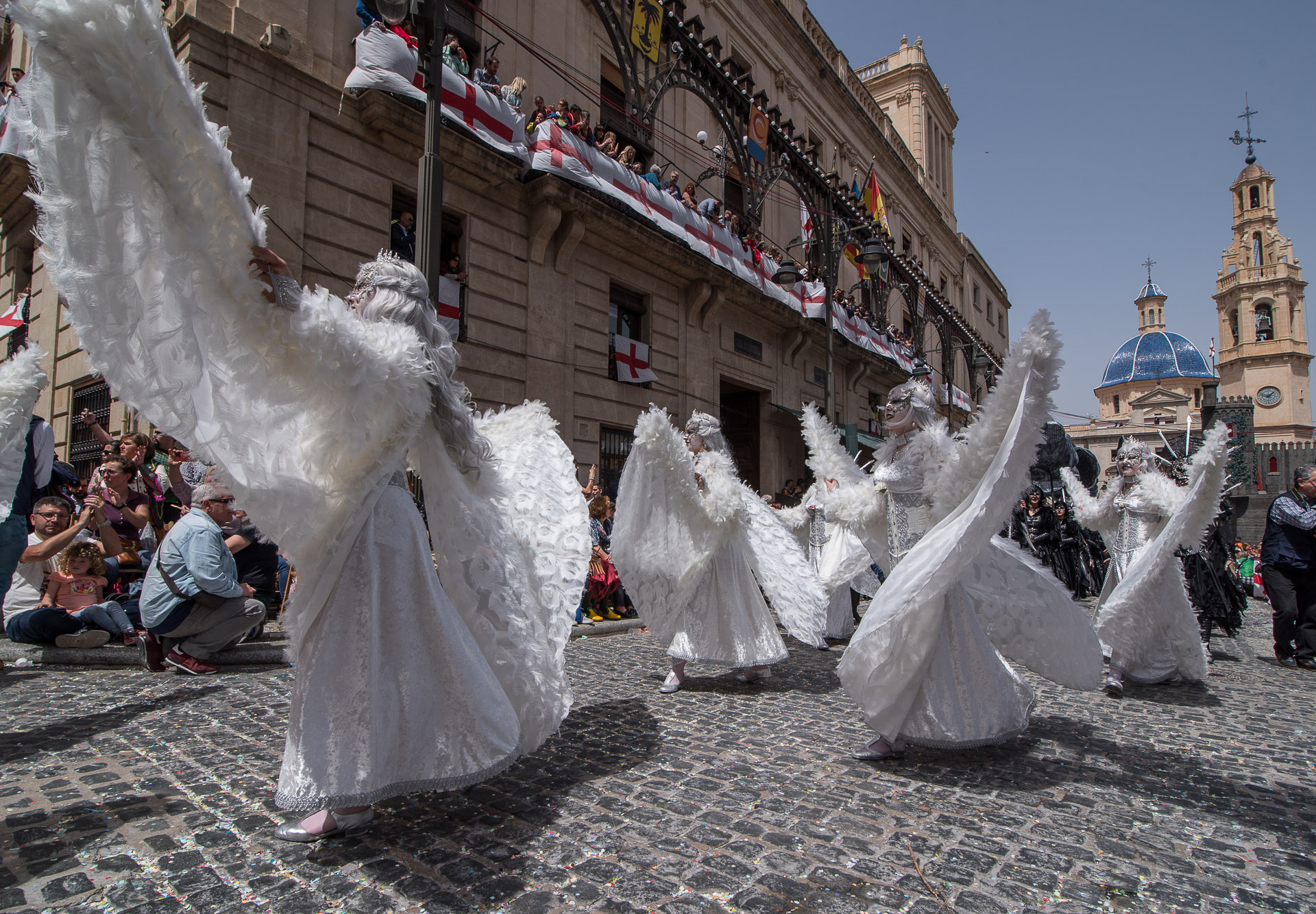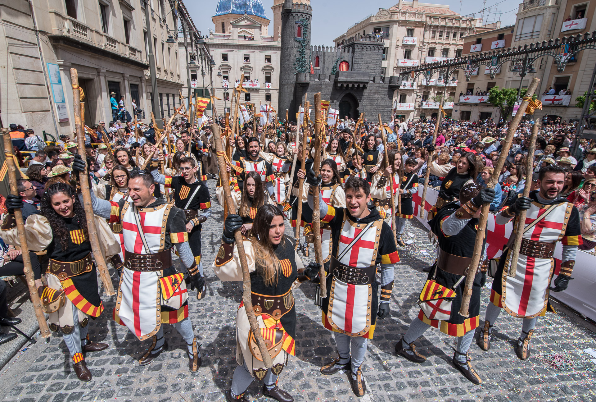 Las 'entradas' de los ejércitos en liza se celebran tradicionalmente dos días antes de la festividad de San Jorge. Por la mañana es el turno de las filás cristianas, por la tarde lo será de las moras.