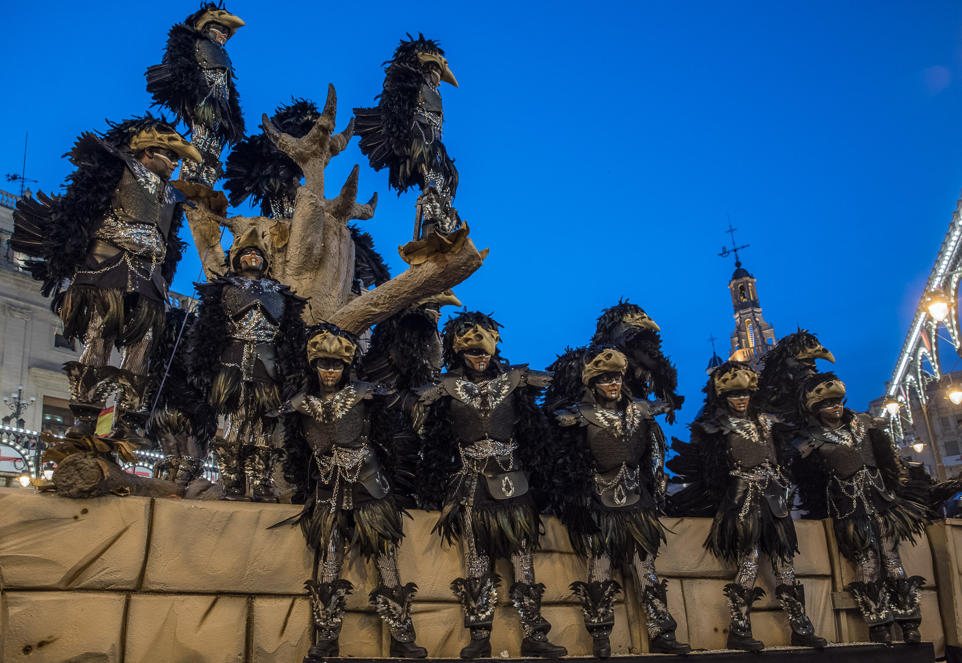 Una carroza espectacular en la subía un grupo de baile que sorprendió a los alcoyanos tanto por su coreografía como por sus trajes de cuervo.