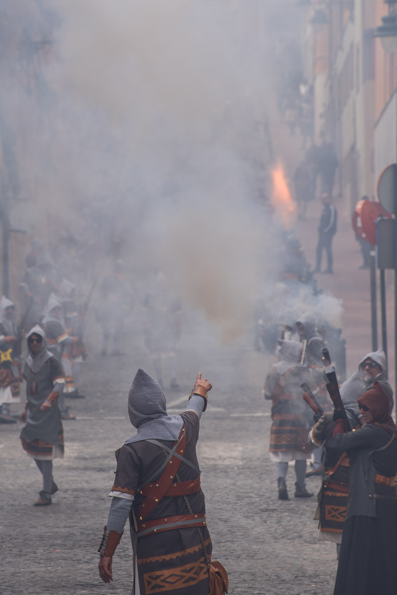 La batalla simbólica se libra por buena parte de la ciudad: moros y cristianos recorren las calles disparando unos ruidosísimos trabucos durante horas.