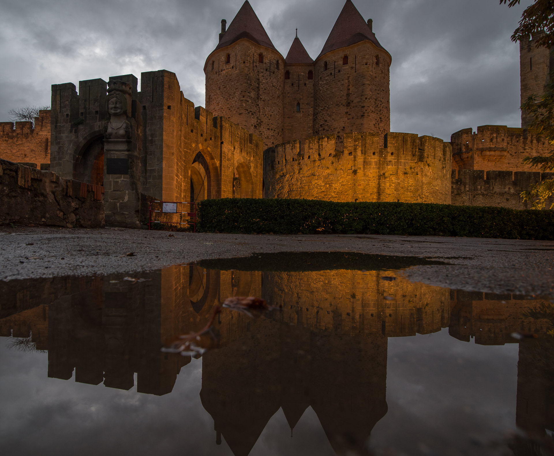 Con la caída de la noche la mayor parte de los turistas abandonan Carcasona y surge otra ciudad, más íntima y con no poco encanto.