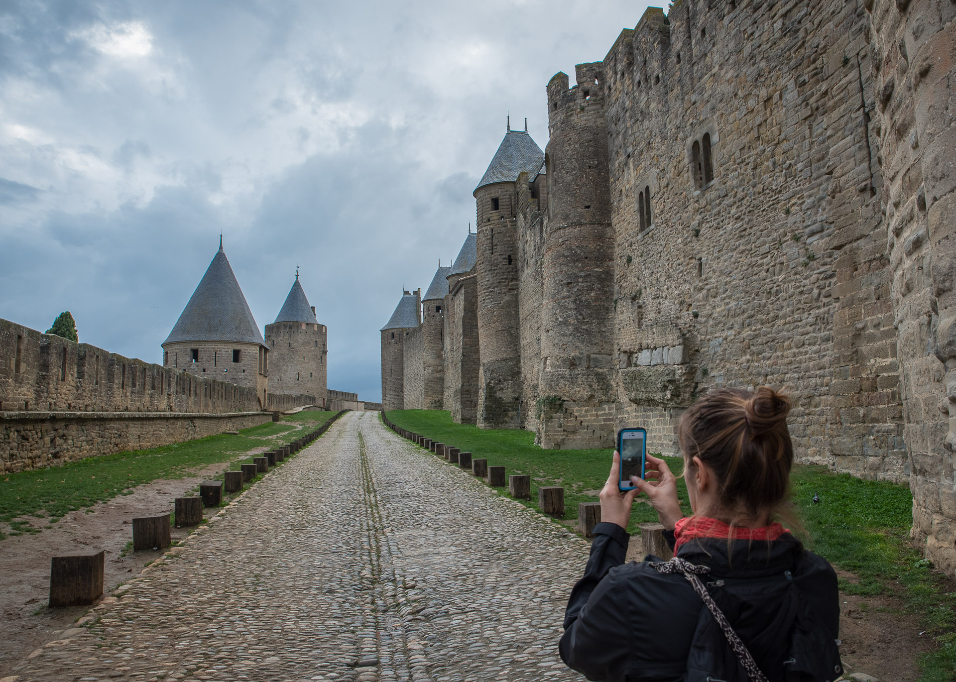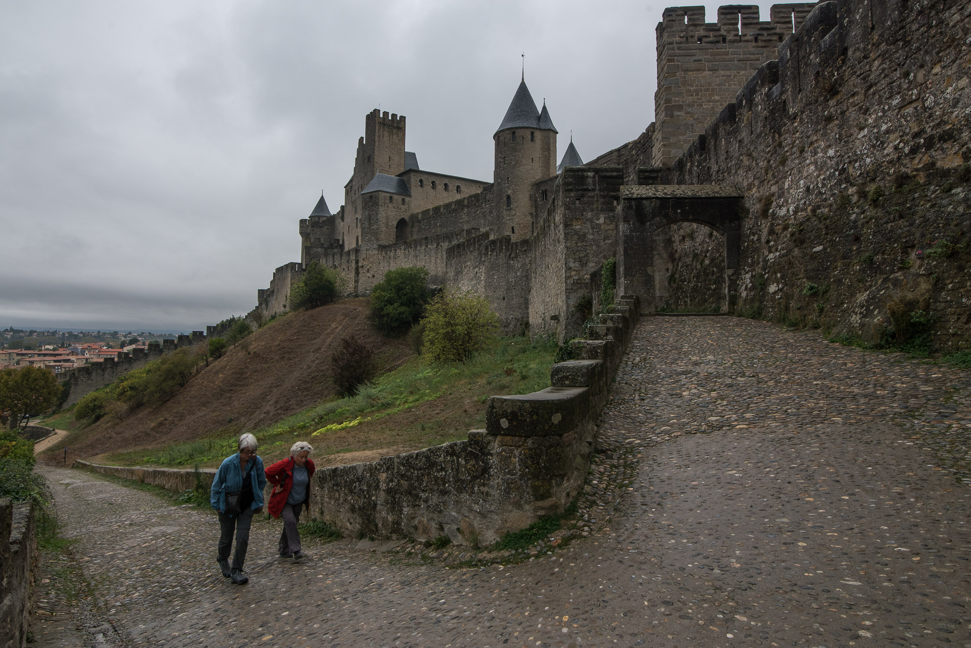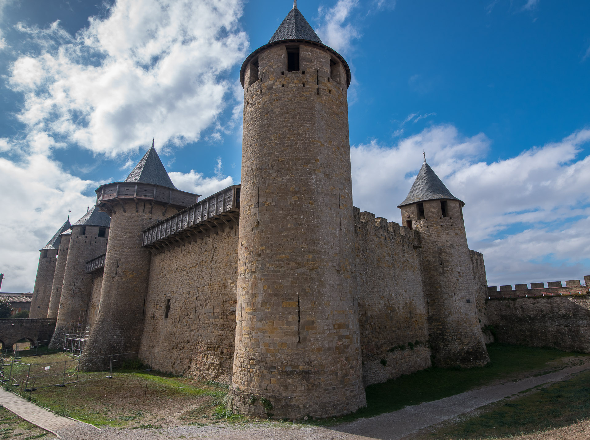 La doble muralla de Carcasona es uno de los conjuntos fortificados más grandes de Europa. Hoy en día un paseo recorre la mayor parte del perímetro.