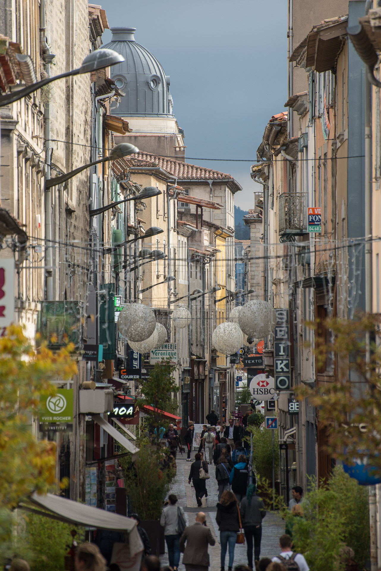 Una de las rectas calles de la bastida de Carcasona: la parte algo más moderna que se creó a los pies de la colina de la ciudadela.