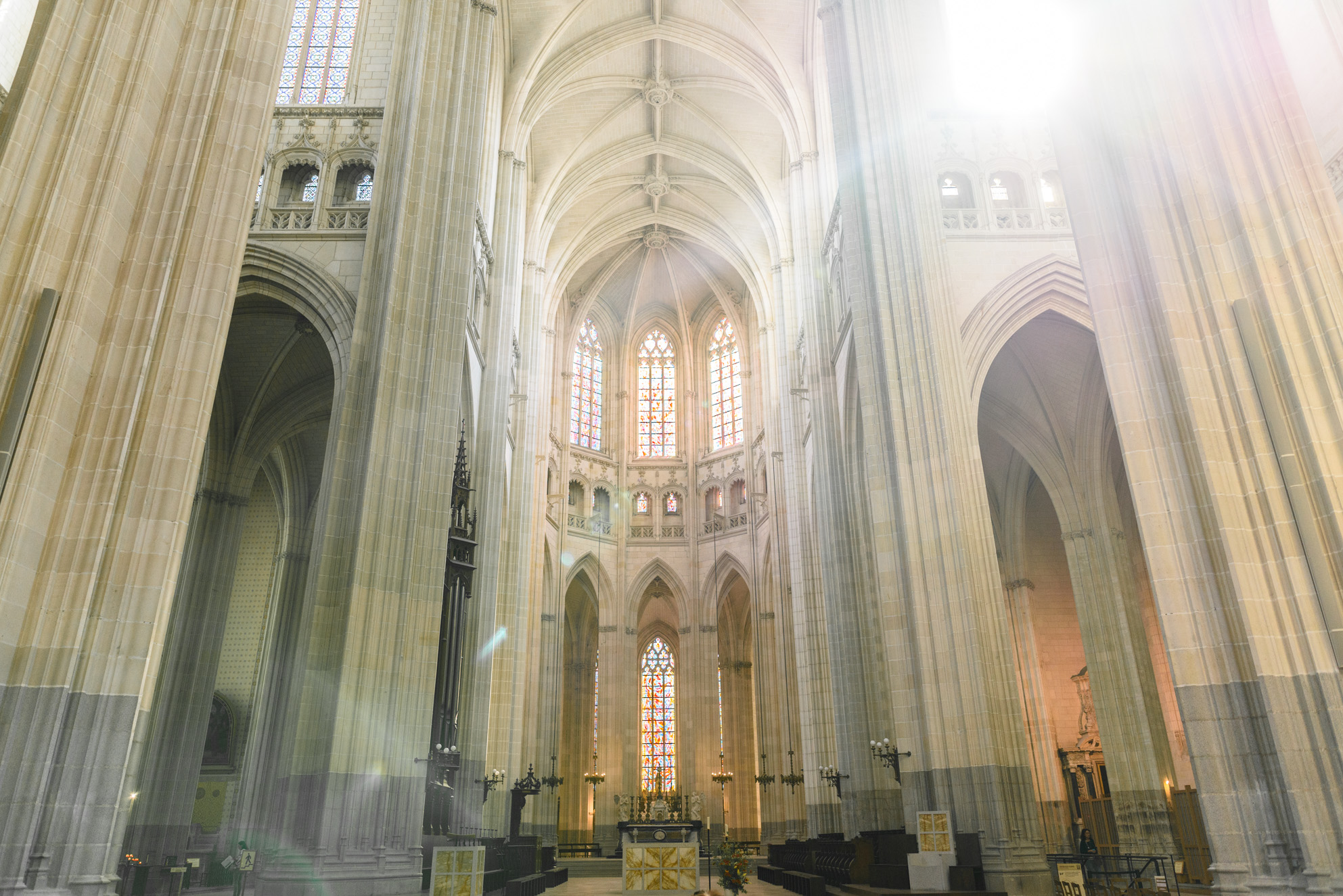 El interior de la catedral de Nantes, que podría rivalizar con el interior de Notre Dame en París, al menos en cuanto al parecido de su fachada principal.