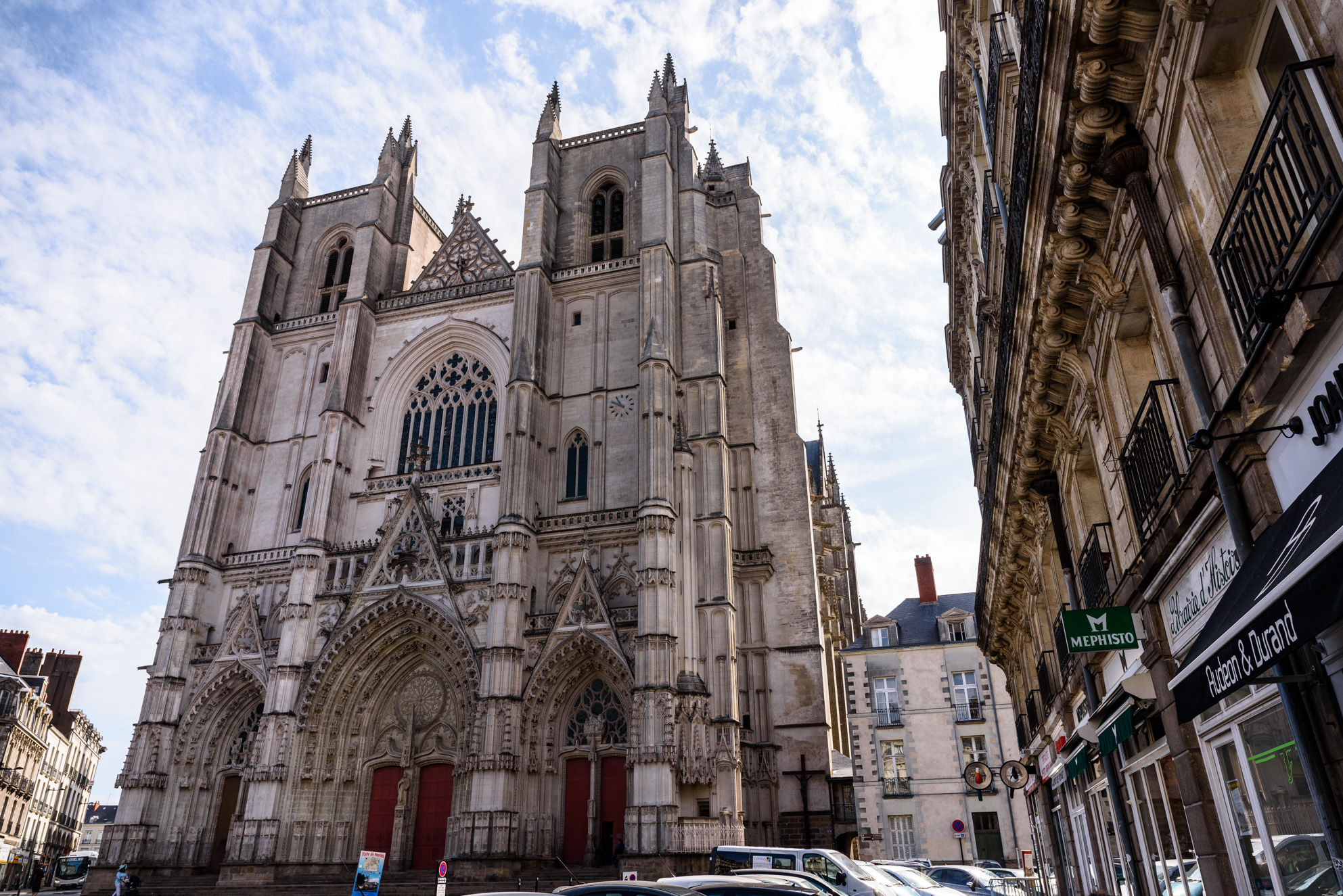 La fachada principal de la catedral de San Pedro y San Pablo en Nantes.