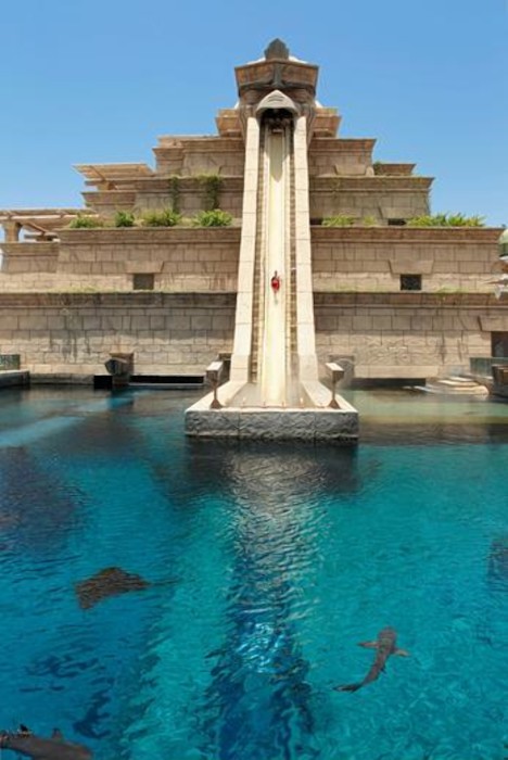 Está ubicado en el lujoso Hotel Atlantis. Es famoso por la velocidad en la caída de sus toboganes y por tener el tobogán más ancho del mundo. En la imagen, la Shark Lagoon, donde se puede alimentar con la mano a las mantarrayas.