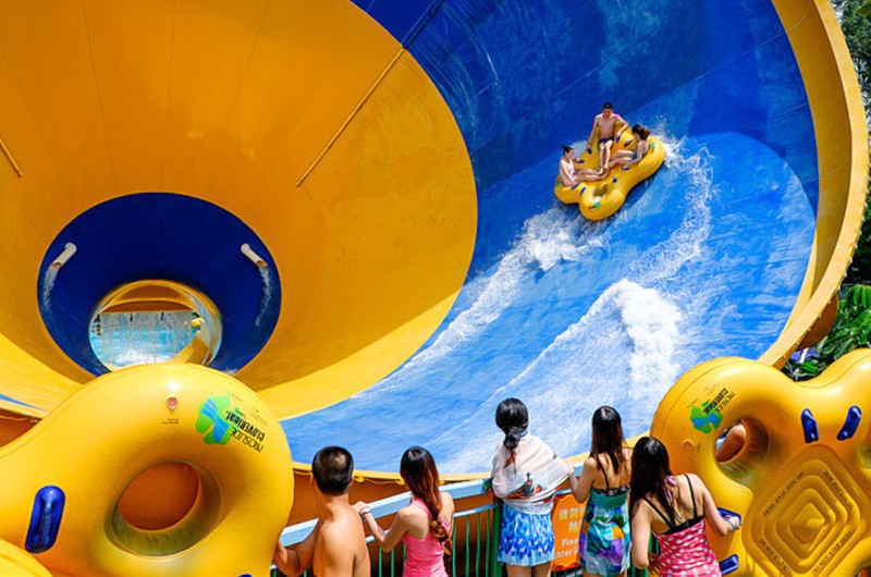 Su principal atracción es el tobogán de agua Dolphin Plung, que lleva a los visitantes a través de un acuario lleno de delfines. También cuanta con una playa cubierta de arena blanca y jardines inspirados en los Mares del Sur con más de 60.000 especies de plantas.
