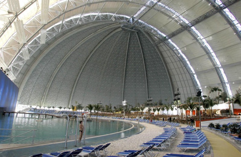 Este sorprendente parque acuático fue construido en un hangar aéreo gigante en Brandenburgo, con 65.961 metros cuadrados y capacidad de 8.000 visitantes por día. Se trata de uno de los mejores parques acuáticos del planeta, con la piscina cubierta más grande del mundo, una playa y una selva tropical con 50.000 plantas, hotel y club nocturno. Incluso es posible dar un paseo en globo sin salir de la enorme estructura que cubre el parque.