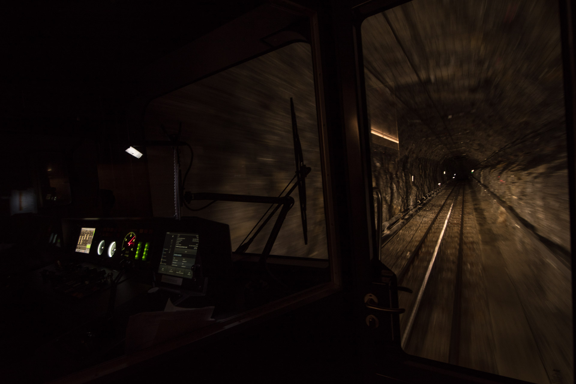Para llegar a lo alto de la montaña el tren atraviesa un túnel de nueve kilómetros con una fuerte pendiente.