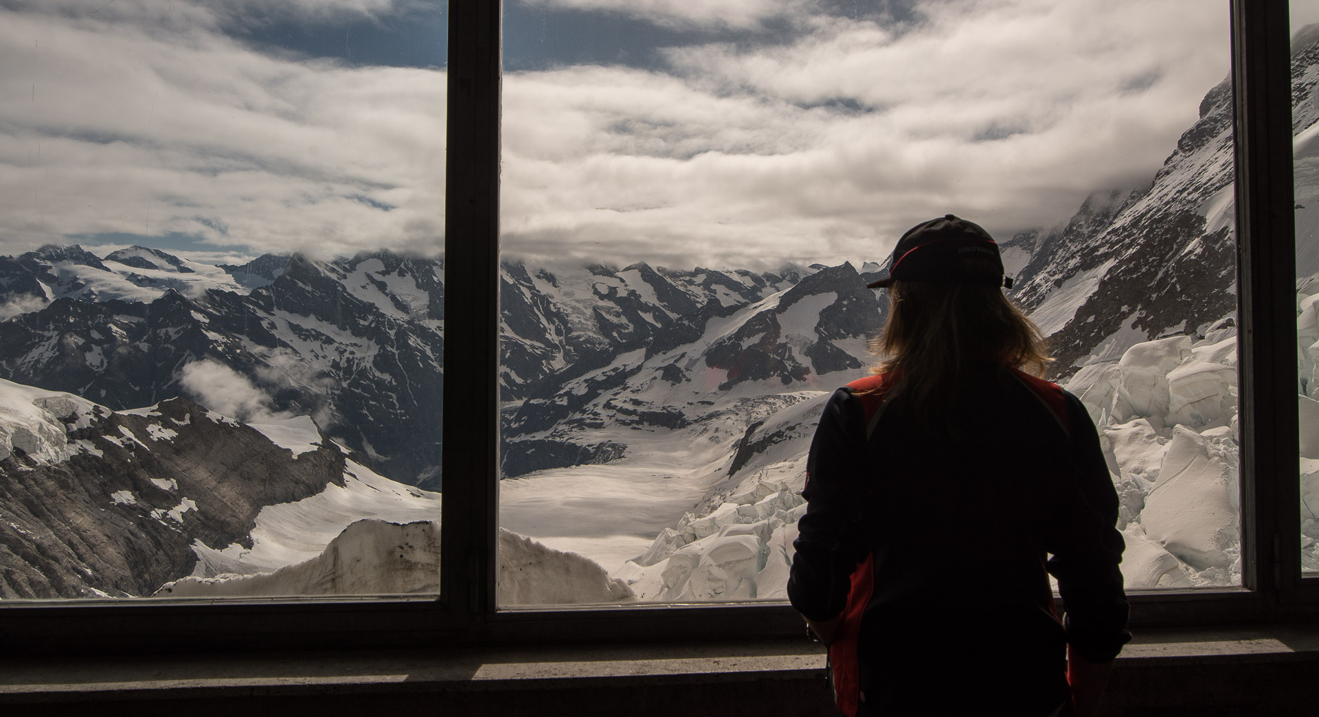 Una para a mitad del túnel nos permite disfrutar de otras vistas y otros glaciares, eso sí a través de una ventana.
