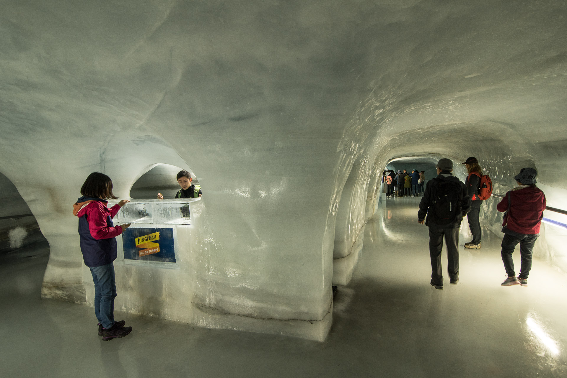 Una de las cosas más sorprendentes que ofrece el Jungfraujoch es su palacio de hielo, excavado en el fondo del glaciar en movimiento.