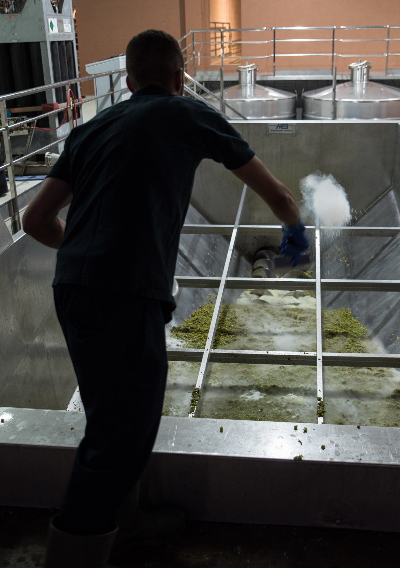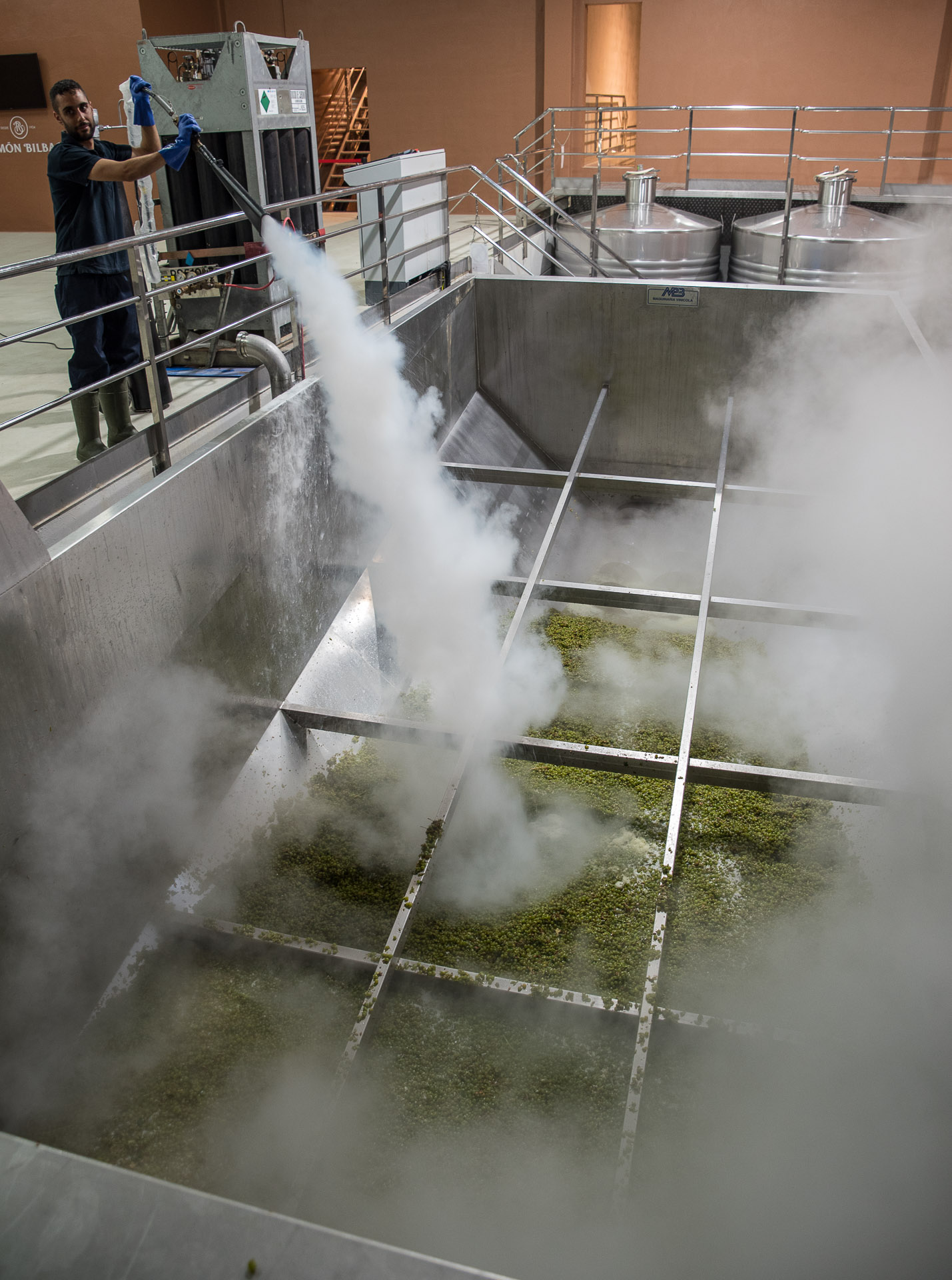 Y también es rociada con CO2 para que, en ausencia de oxígeno, no inice el proceso de oxidación antes de tiempo.