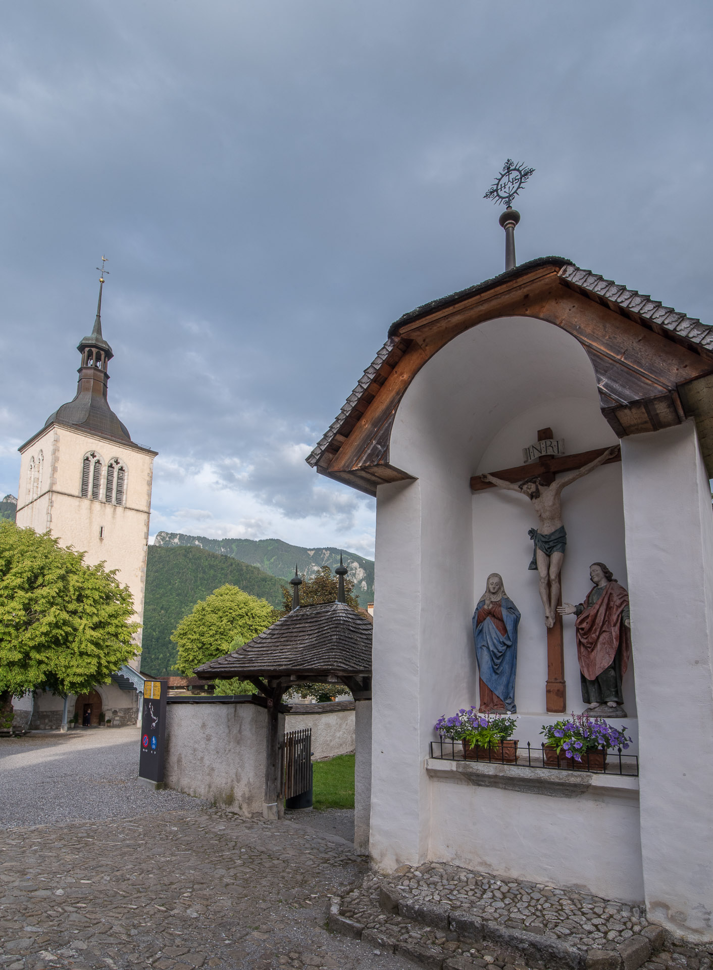 Una especie de pequeño altar callejero nos recuerda que Gruyères es parte de un cantón católico.