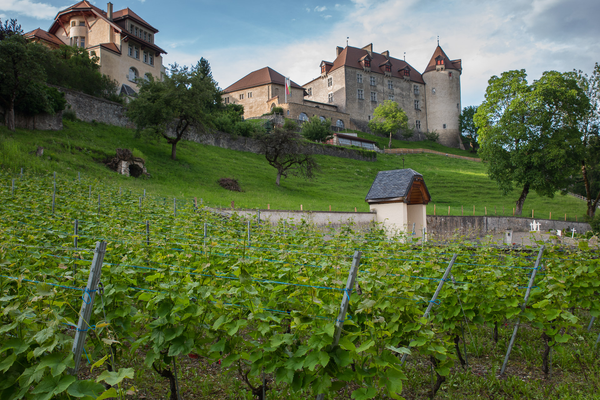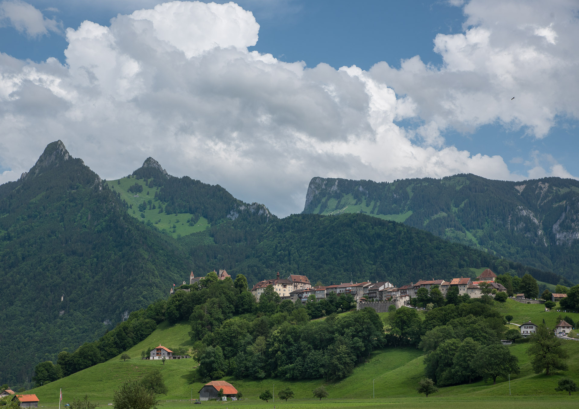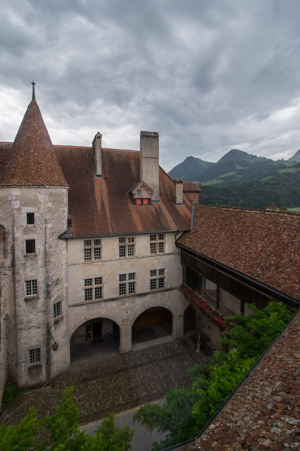 El castillo de Gruyère domina desde lo alto la pequeña villa.
