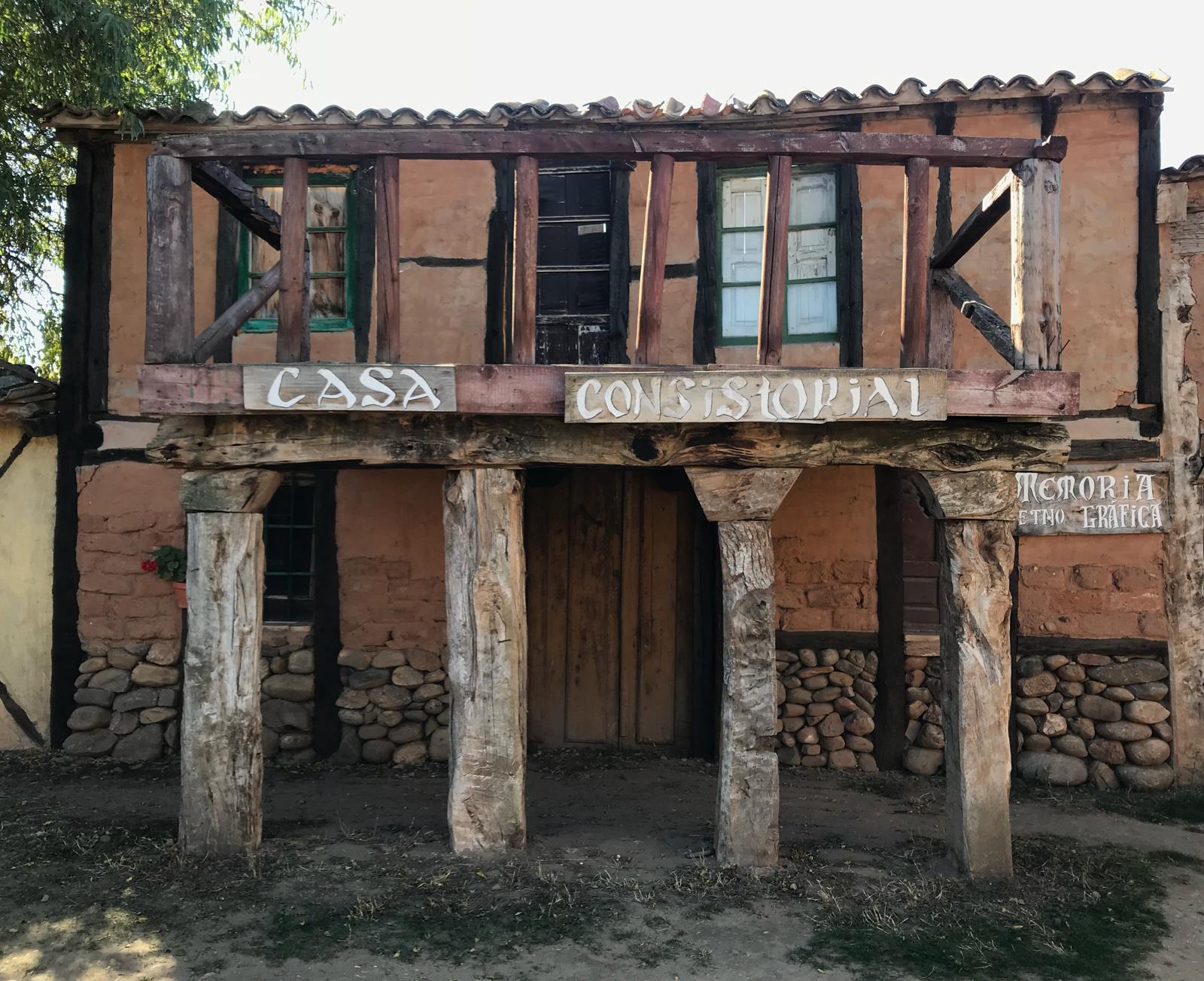 La Casa Consistorial preside la plaza de la escultura más grande del mundo en Quintanilla de la Sal (Burgos).