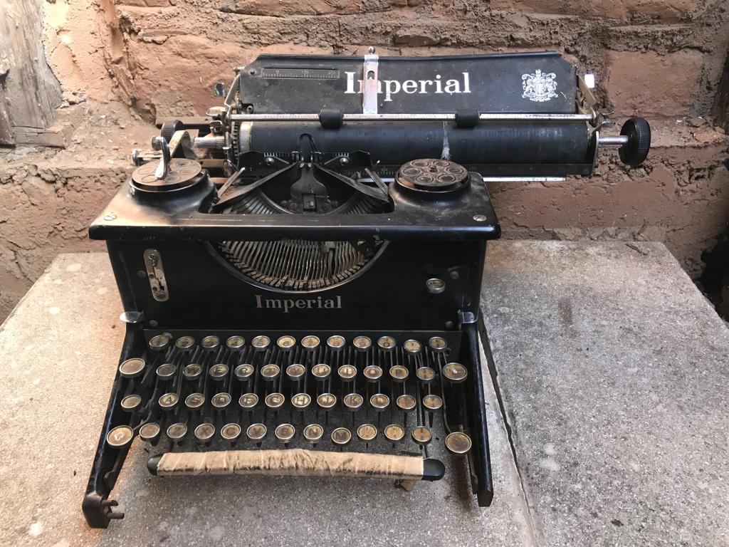 Esta máquina de escribir se encuentra en el interior de una de las casas como objeto decorativo.