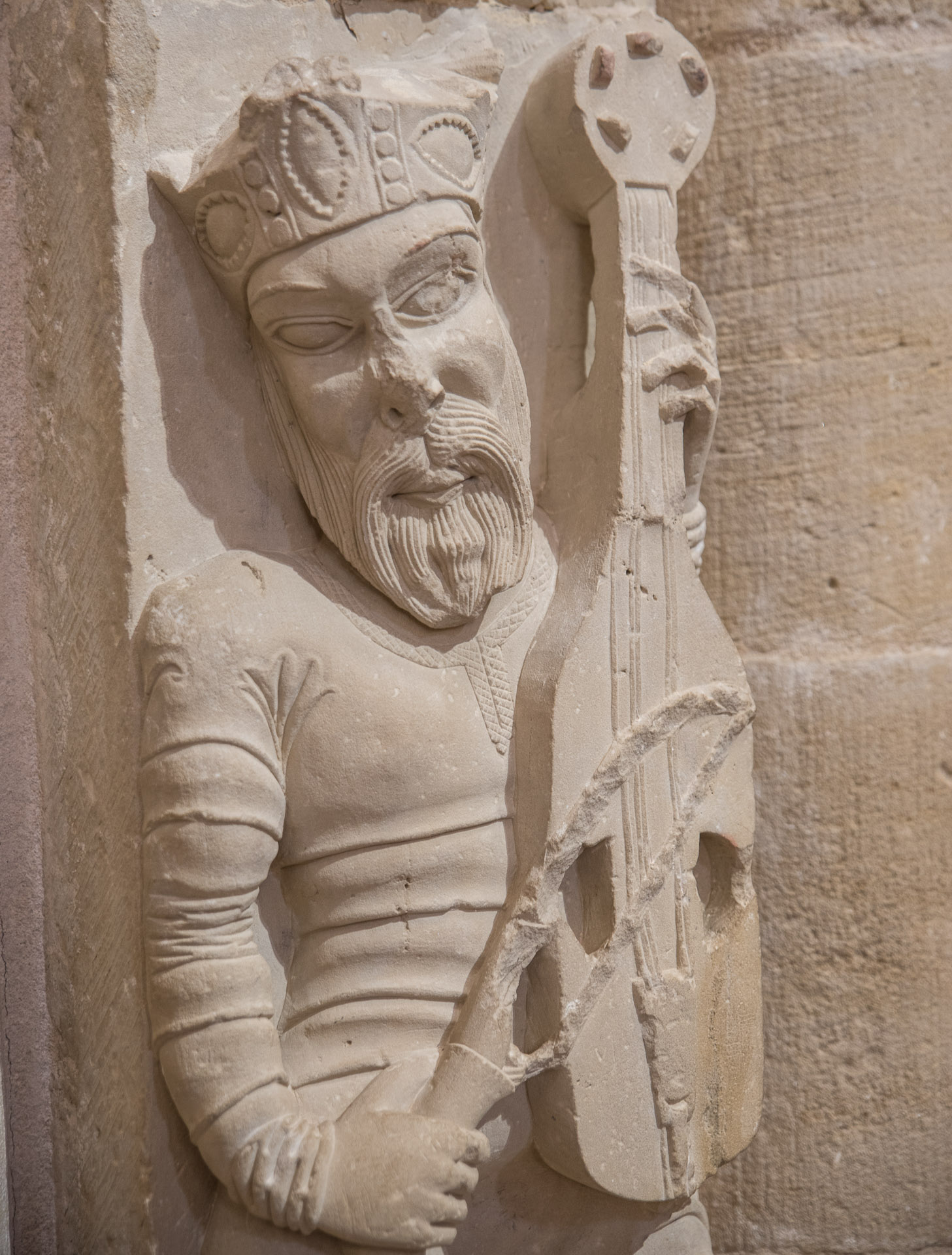 Una de las esculturas románicas de la cabecera de la catedral.